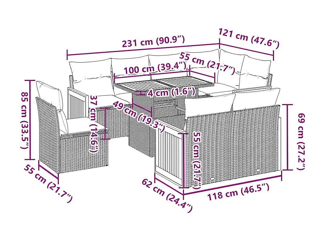 Salon complet de jardin Canapé 2 places et 2 fauteuils