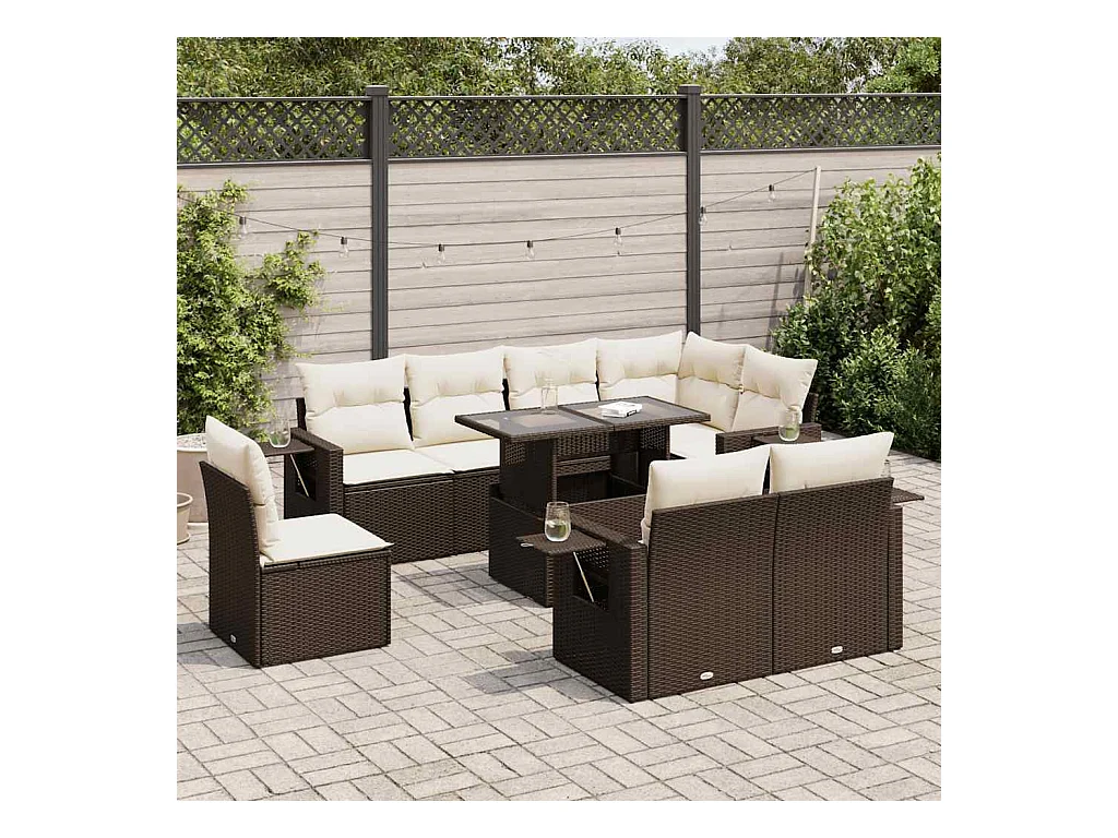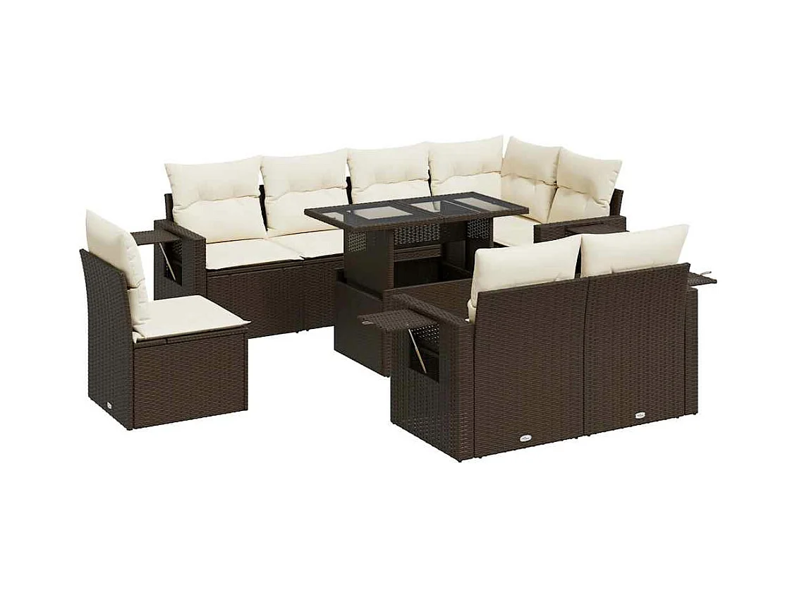 Salon de jardin avec coussins 9 pcs marron résine tressée