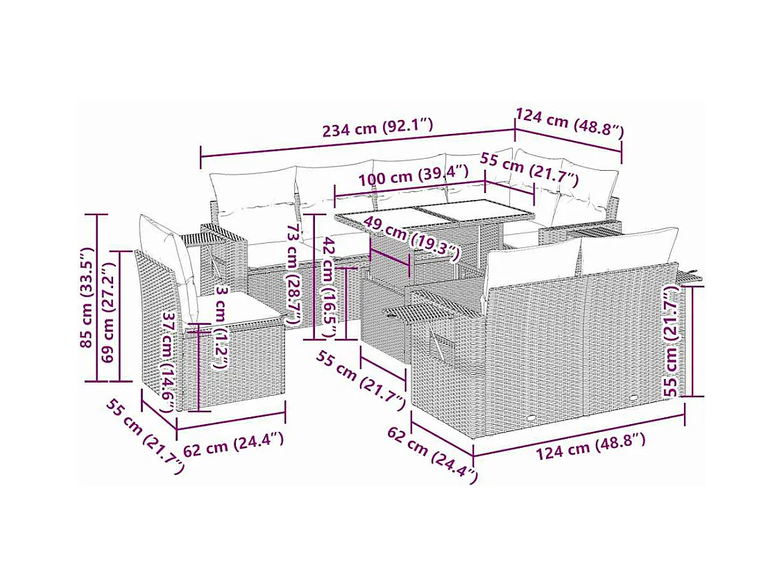 Salon complet de jardin Canapé 2 places et 2 fauteuils