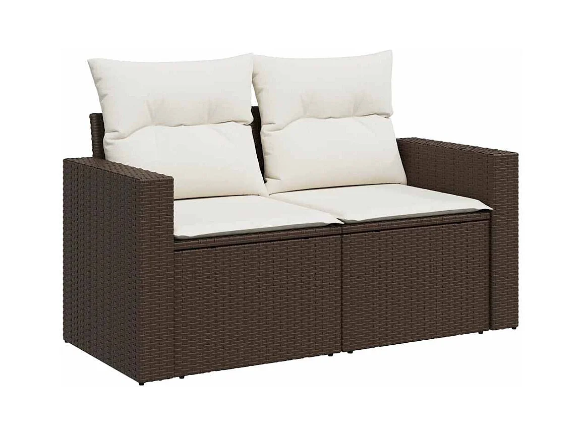 Salon de jardin avec coussins 7 pcs marron résine tressée