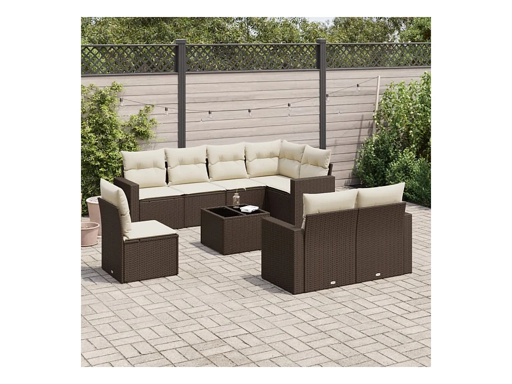 Salon de jardin avec coussins 9 pcs marron résine tressée