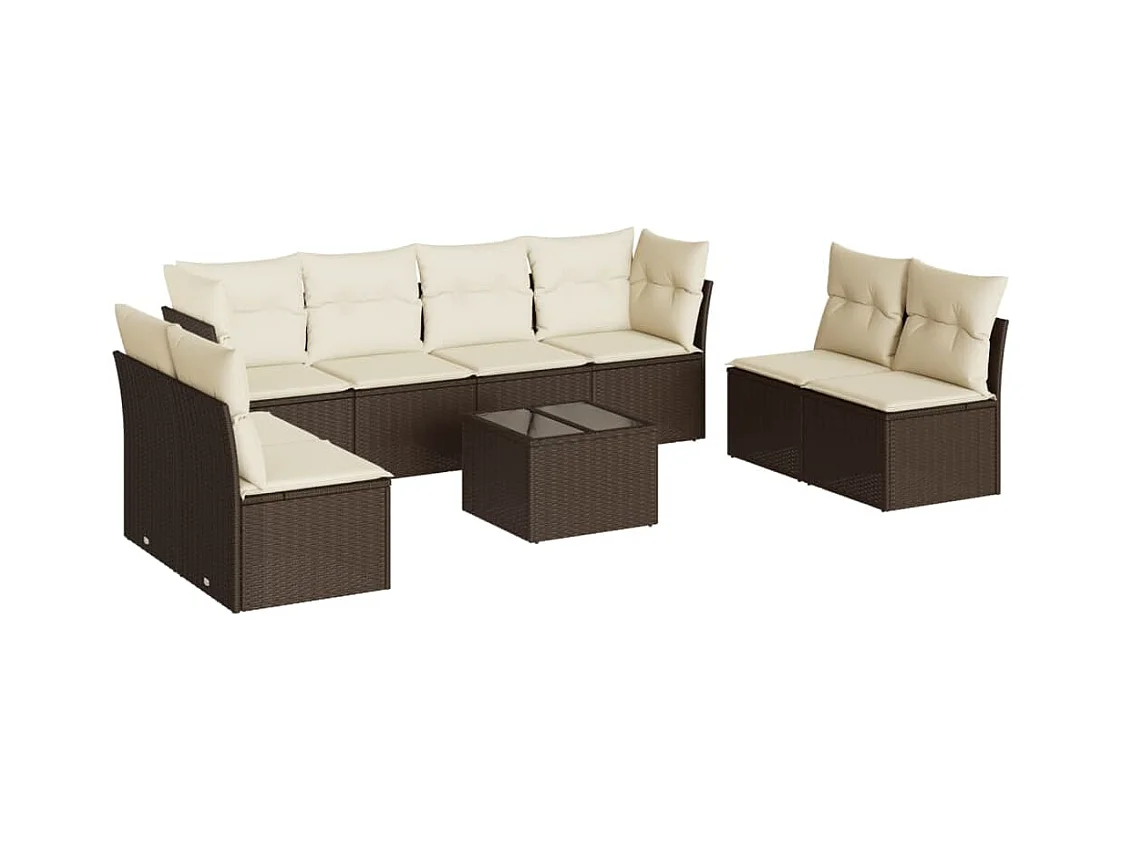 Salon de jardin 8 pcs avec coussins marron résine tressée