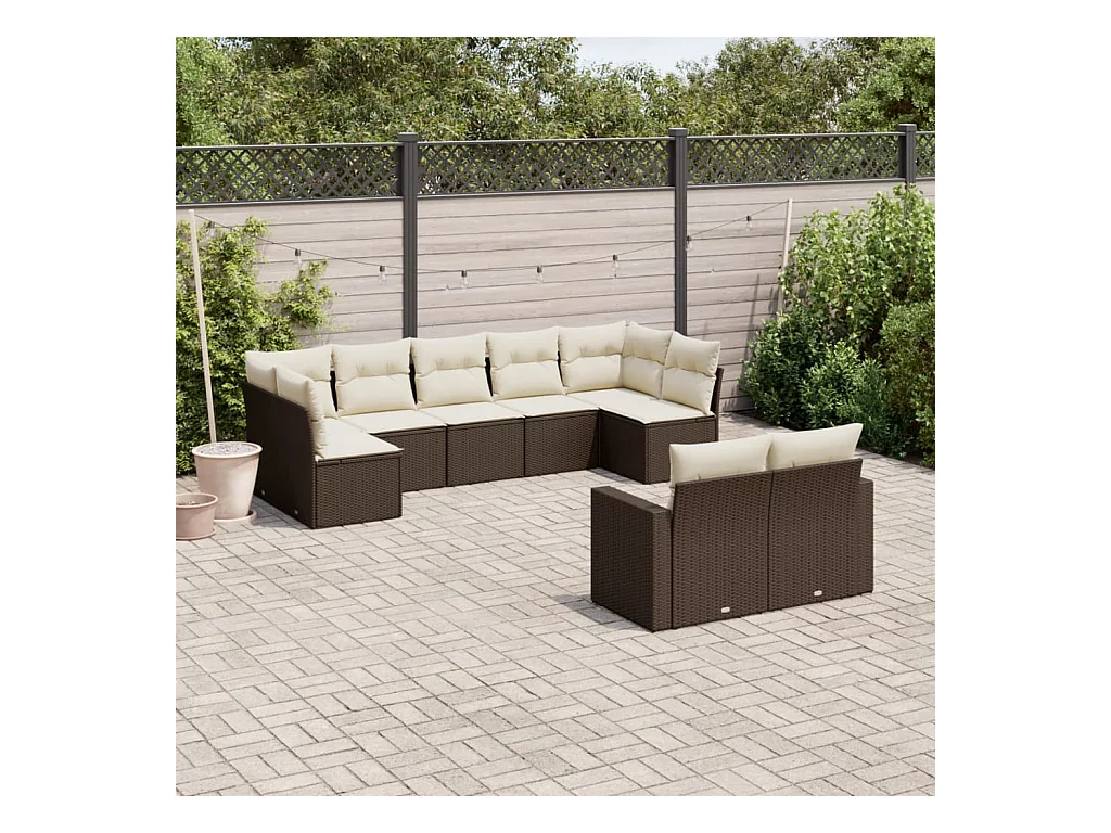 Salon de jardin avec coussins 9 pcs marron résine tressée