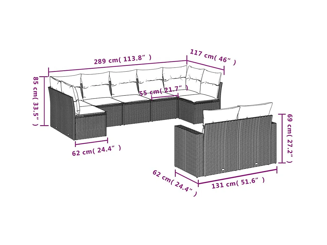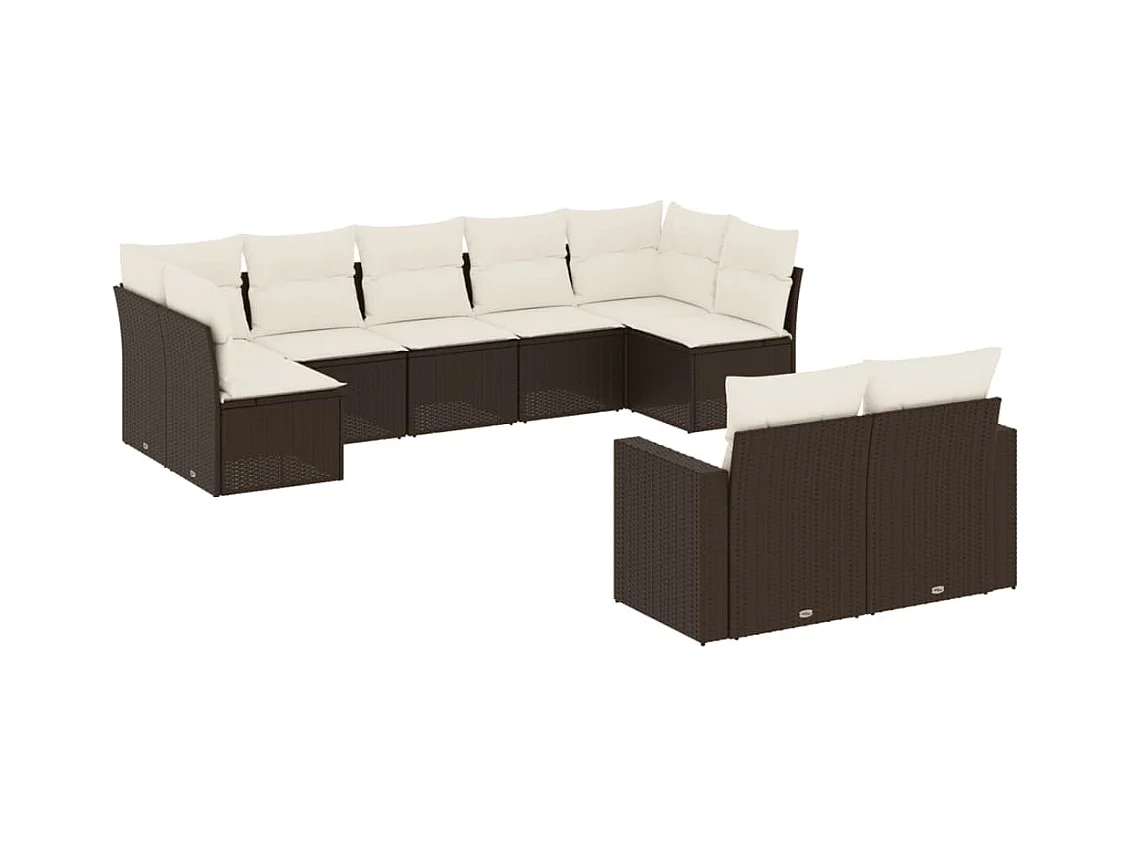 Salon de jardin 8 pcs avec coussins marron résine tressée