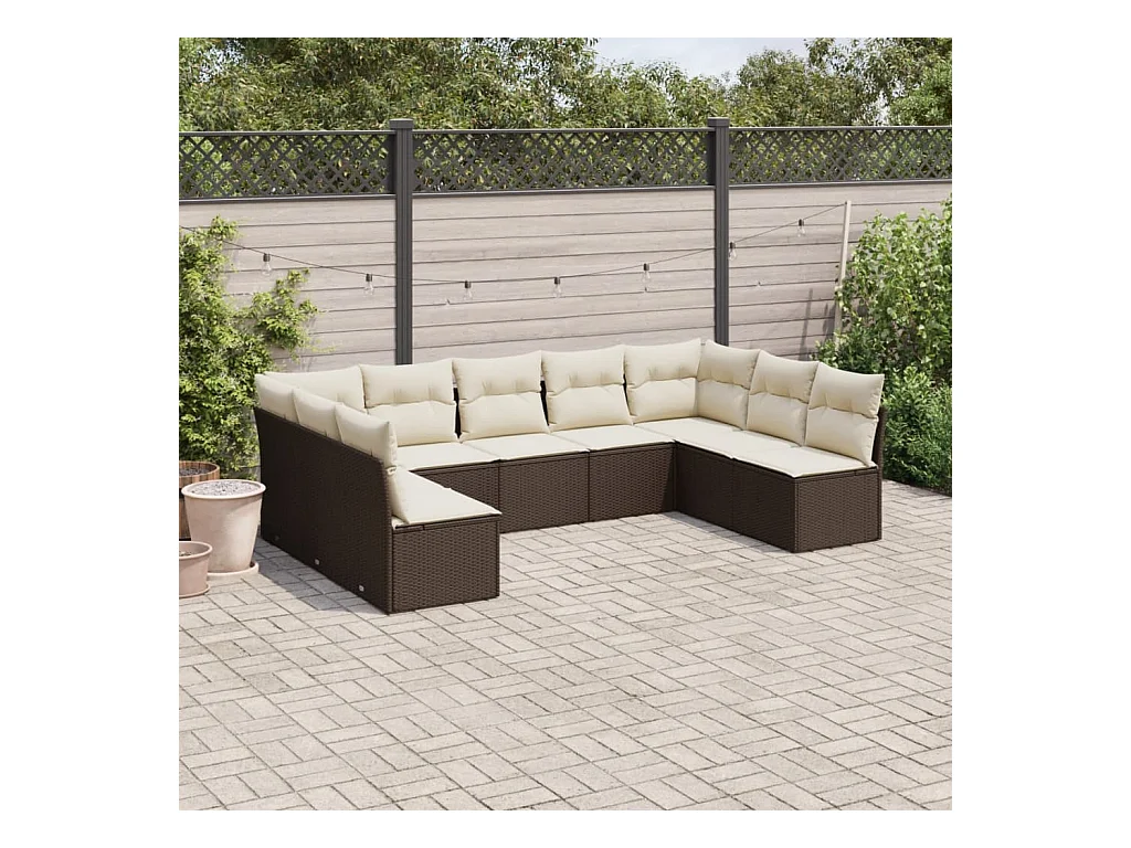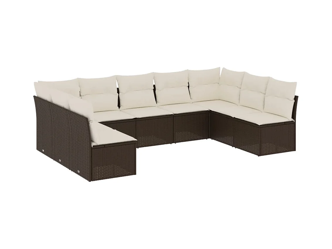 Salon de jardin 10 pcs avec coussins marron résine tressée