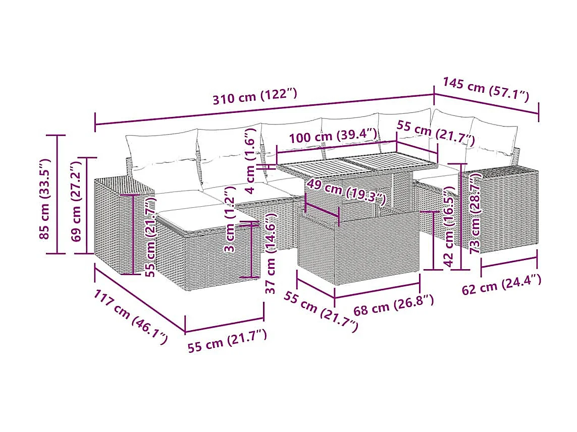Salon complet de jardin Canapé 2 places et 2 fauteuils