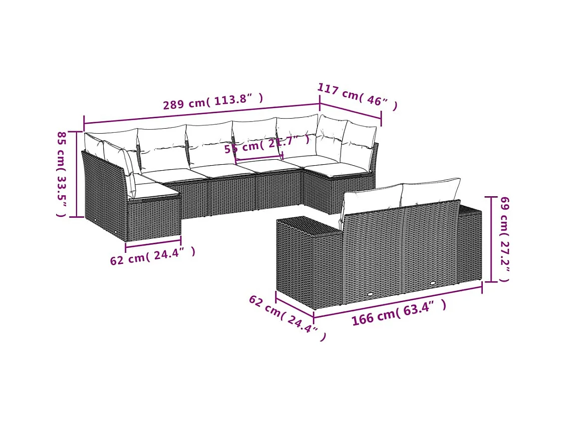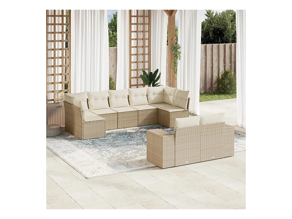 Salon de jardin avec coussins 9 pièces beige résine tressée