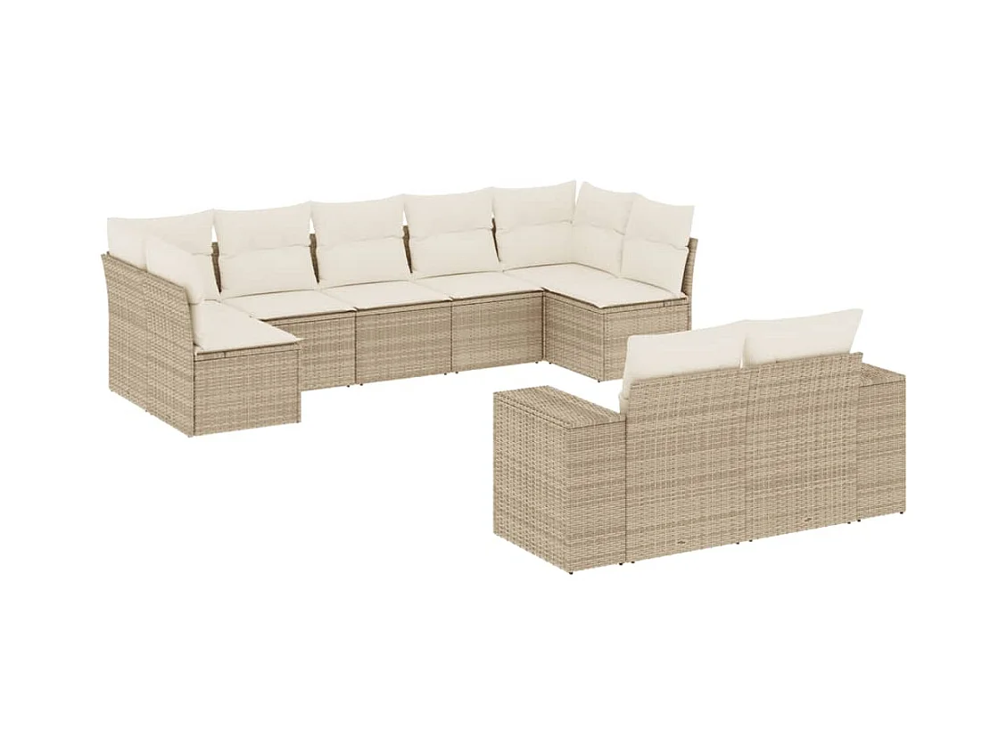 Salon de jardin avec coussins 8 pièces beige résine tressée