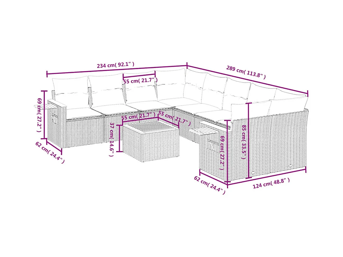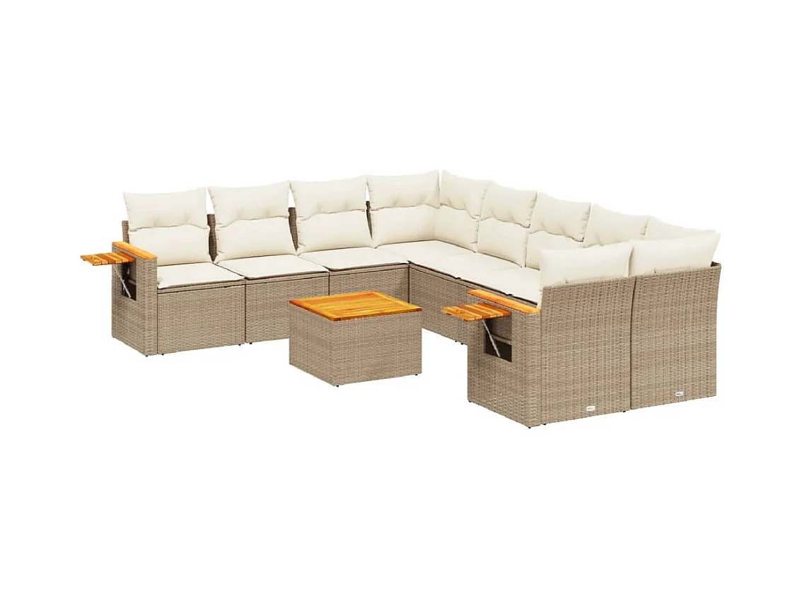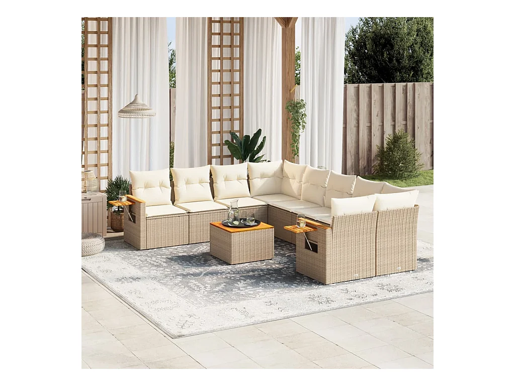 Salon de jardin avec coussins 9 pièces beige résine tressée