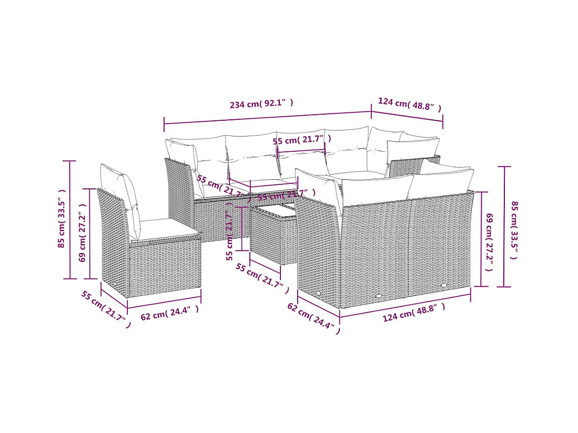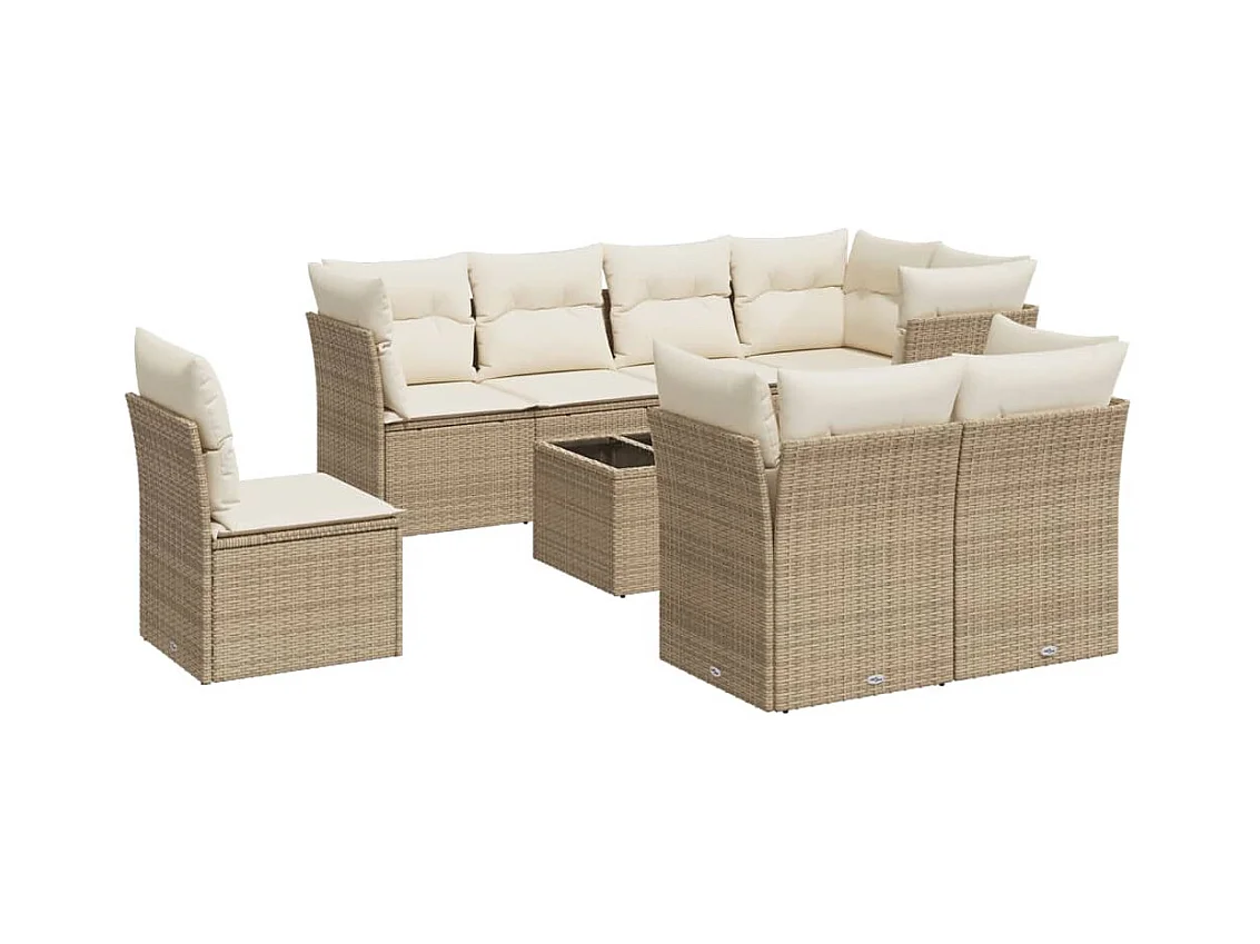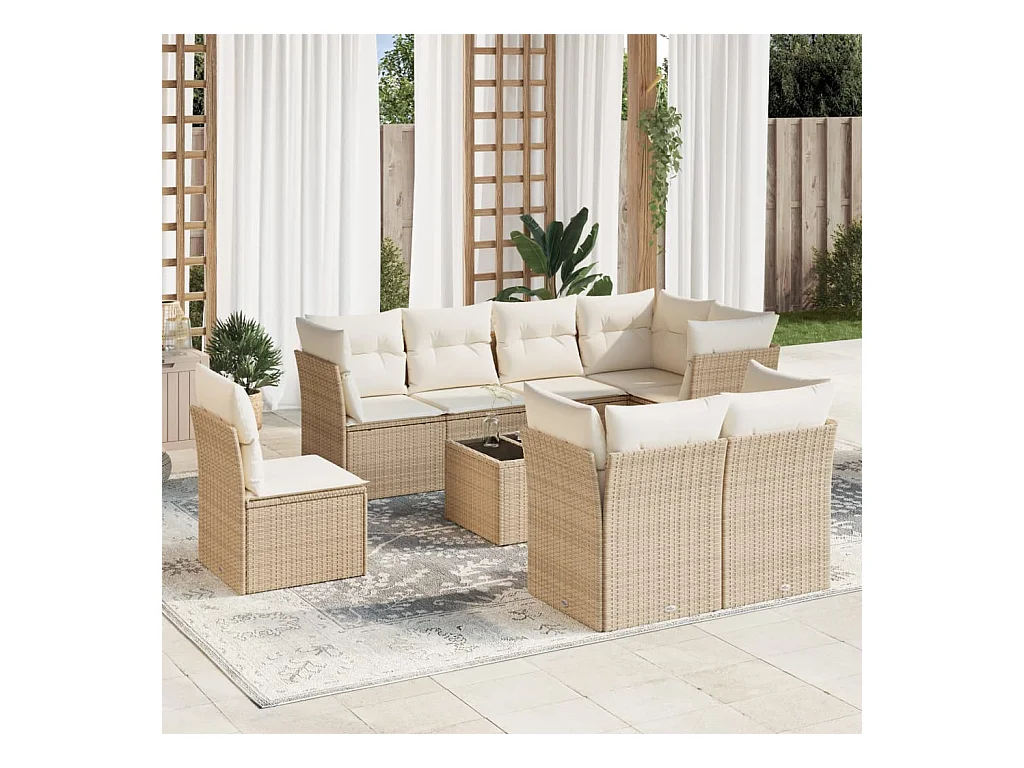 Salon de jardin avec coussins 9 pièces beige résine tressée