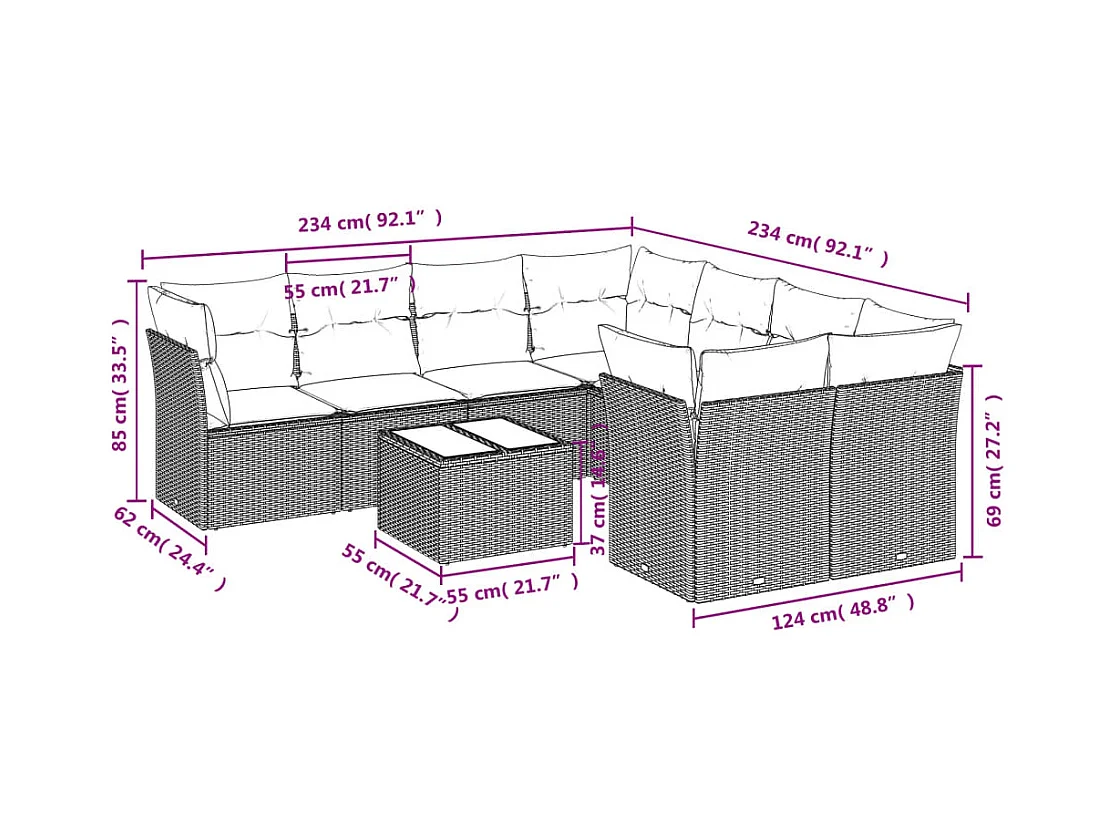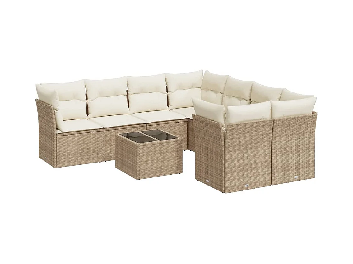 Salon de jardin avec coussins 9 pièces beige résine tressée