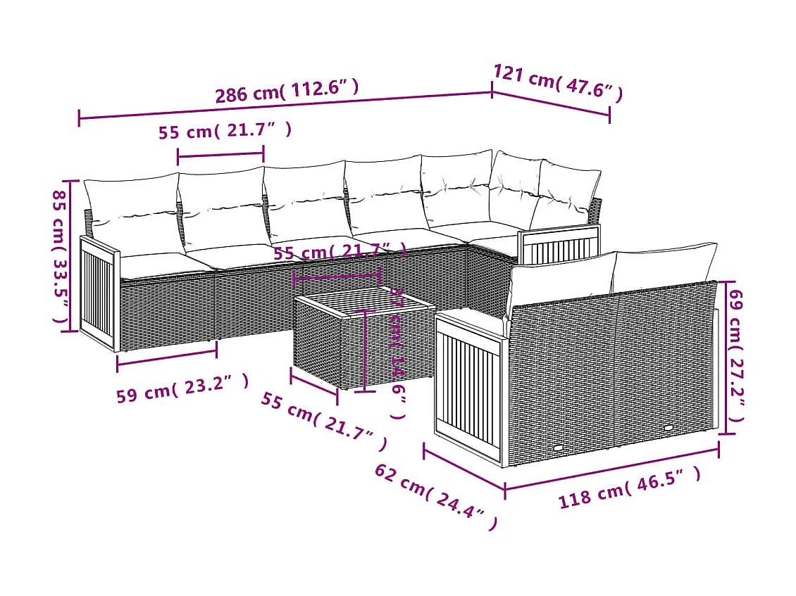 Salon de jardin avec coussins 9 pièces beige résine tressée