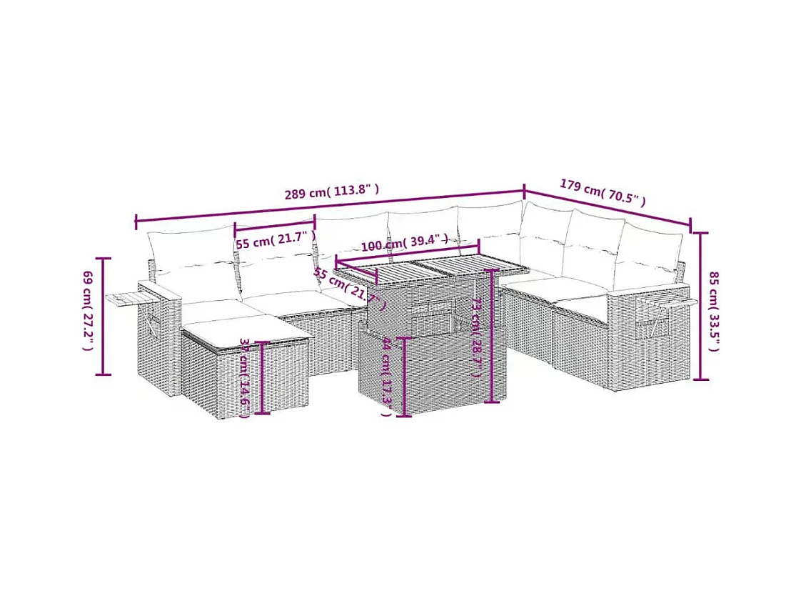 Salon de jardin avec coussins 9 pièces beige résine tressée