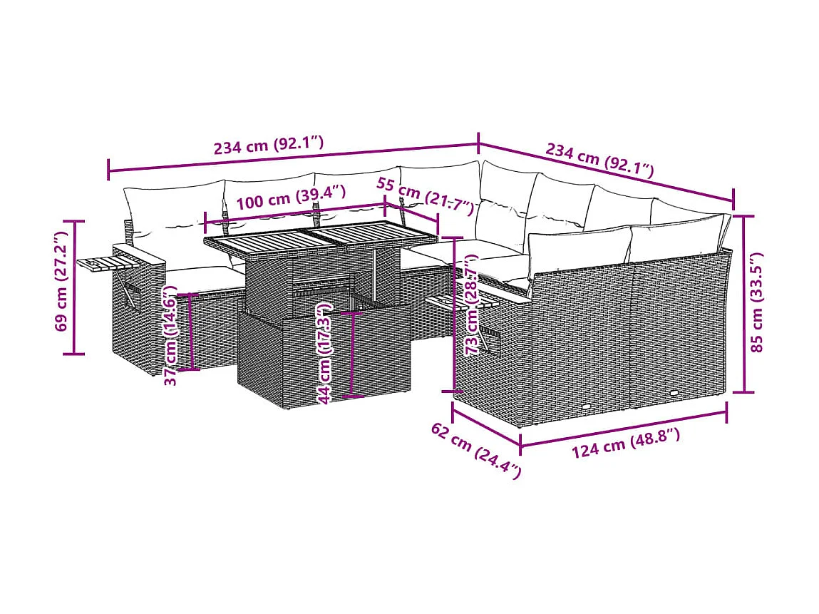 Salon de jardin avec coussins 9 pièces beige résine tressée