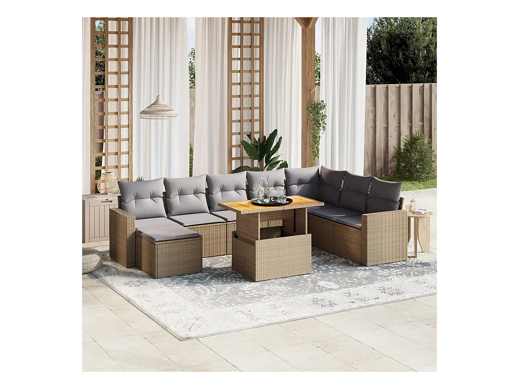 Salon de jardin avec coussins 10 pièces beige résine tressée acacia