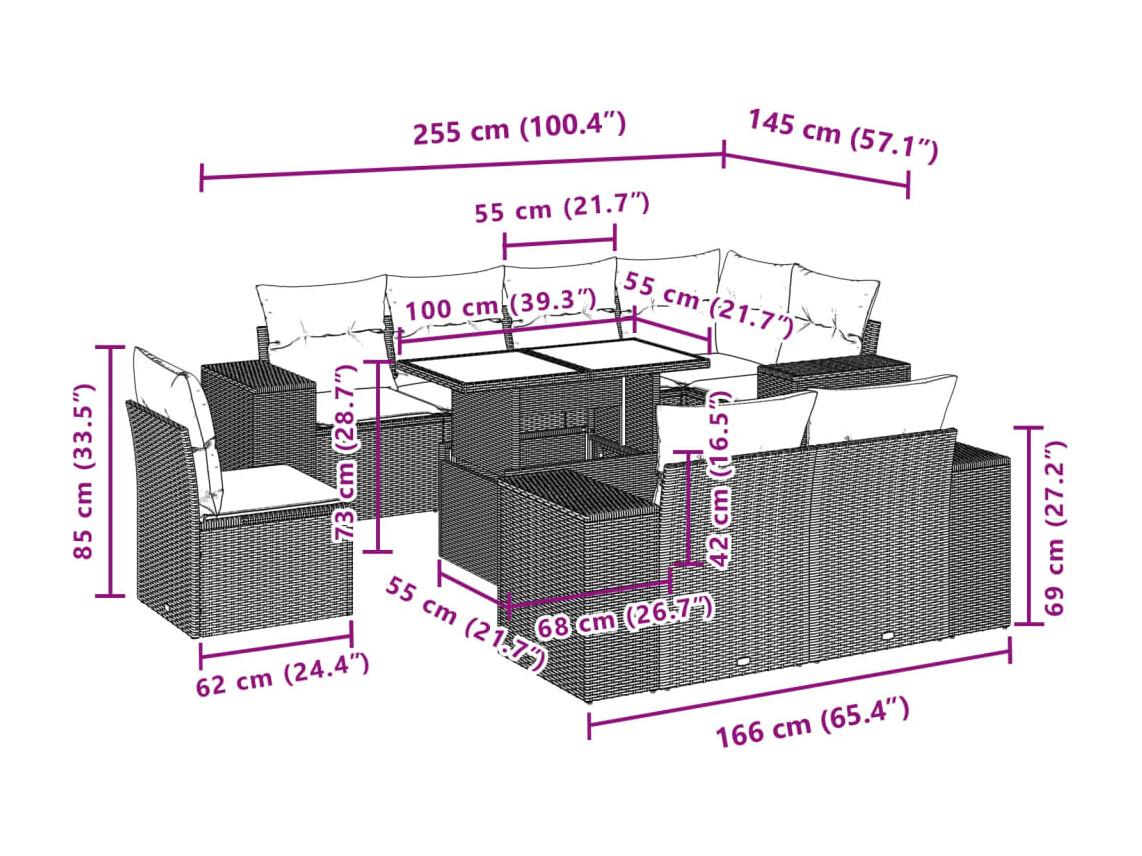 Salon de jardin avec coussins 9 pièces beige résine tressée