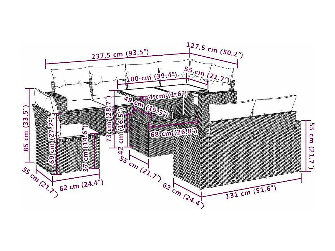 Salon complet de jardin Canapé 2 places et 2 fauteuils