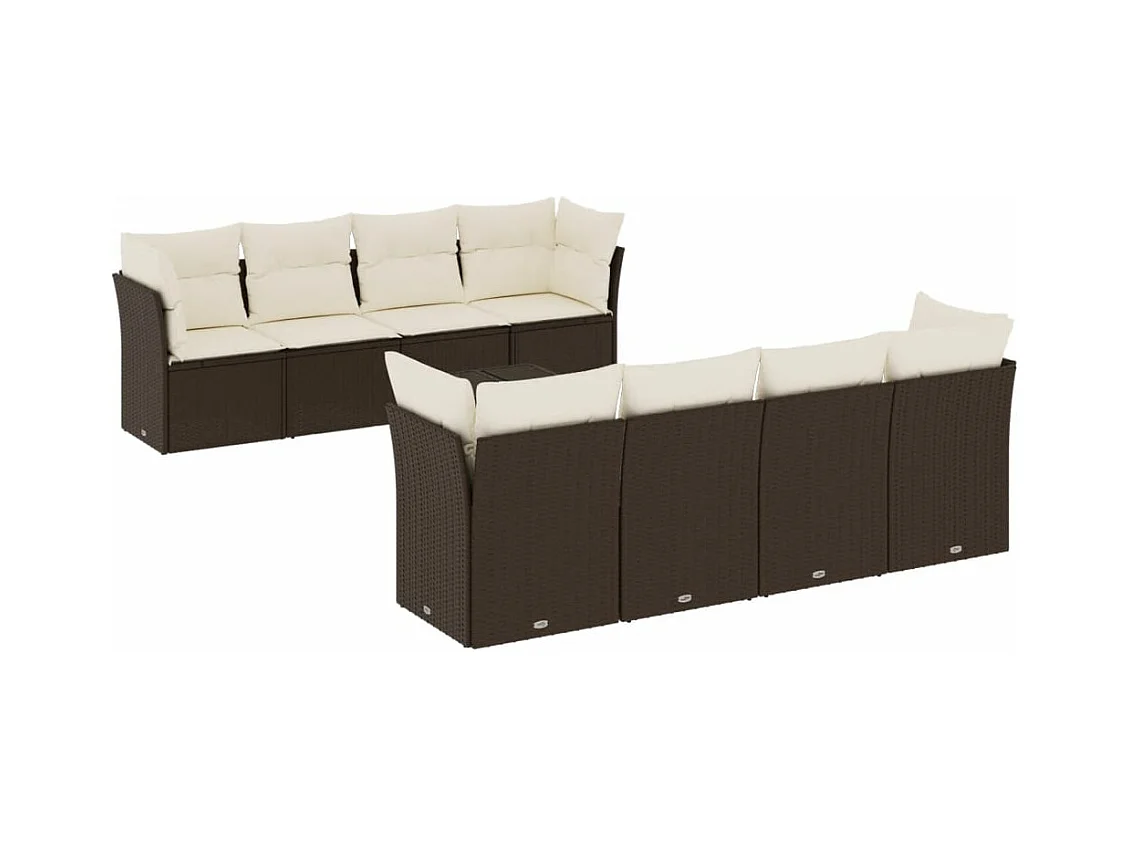 Salon de jardin 8 pièces avec coussins marron résine tressée