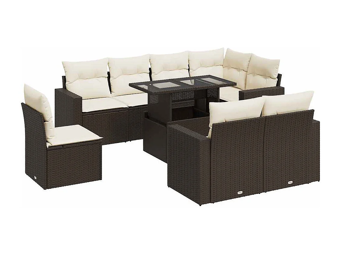 Salon de jardin avec coussins 9 pièces marron résine tressée