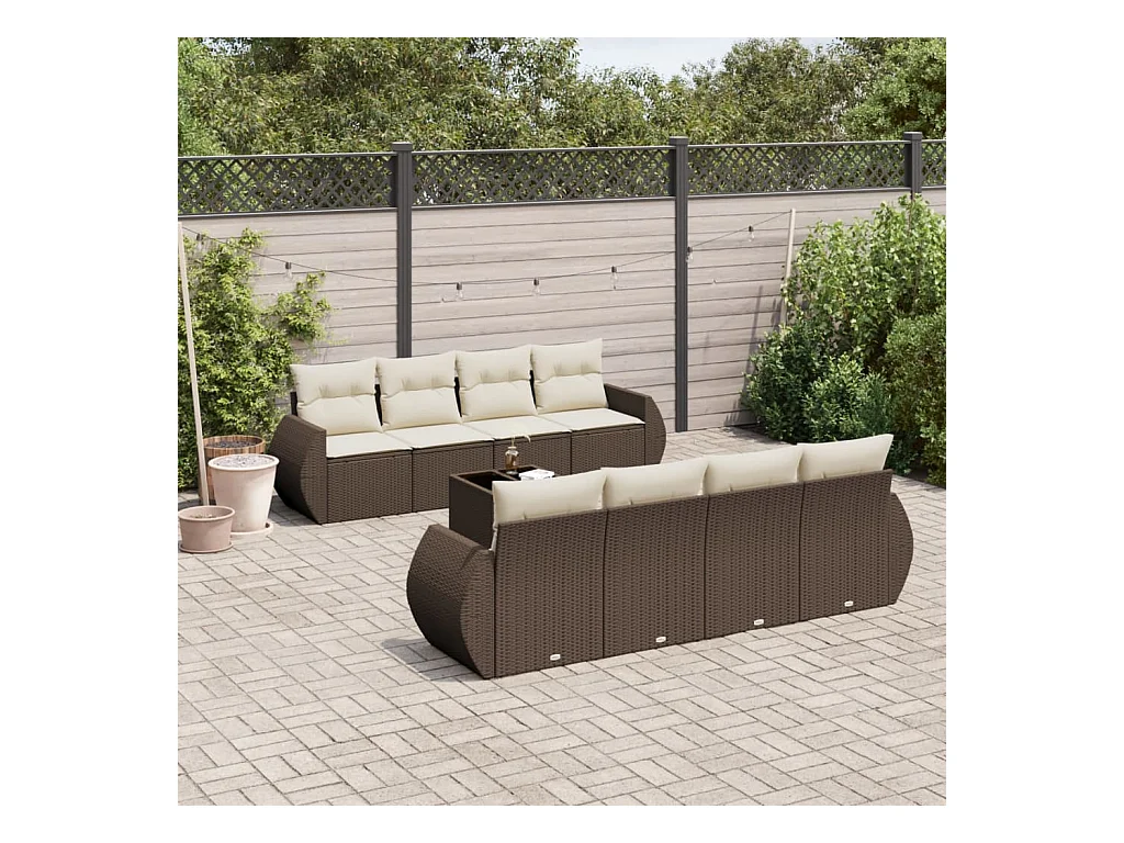 Salon de jardin 8 pièces avec coussins marron résine tressée