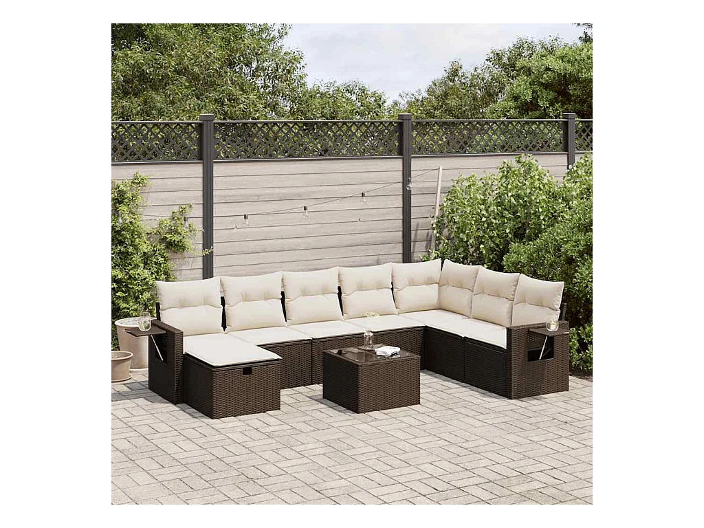 Salon de jardin 8 pièces avec coussins marron résine tressée