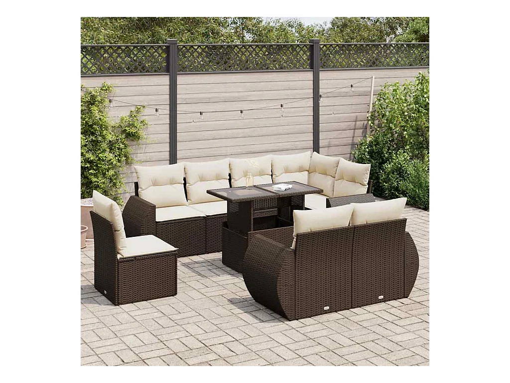 Salon de jardin avec coussins 9 pièces marron résine tressée