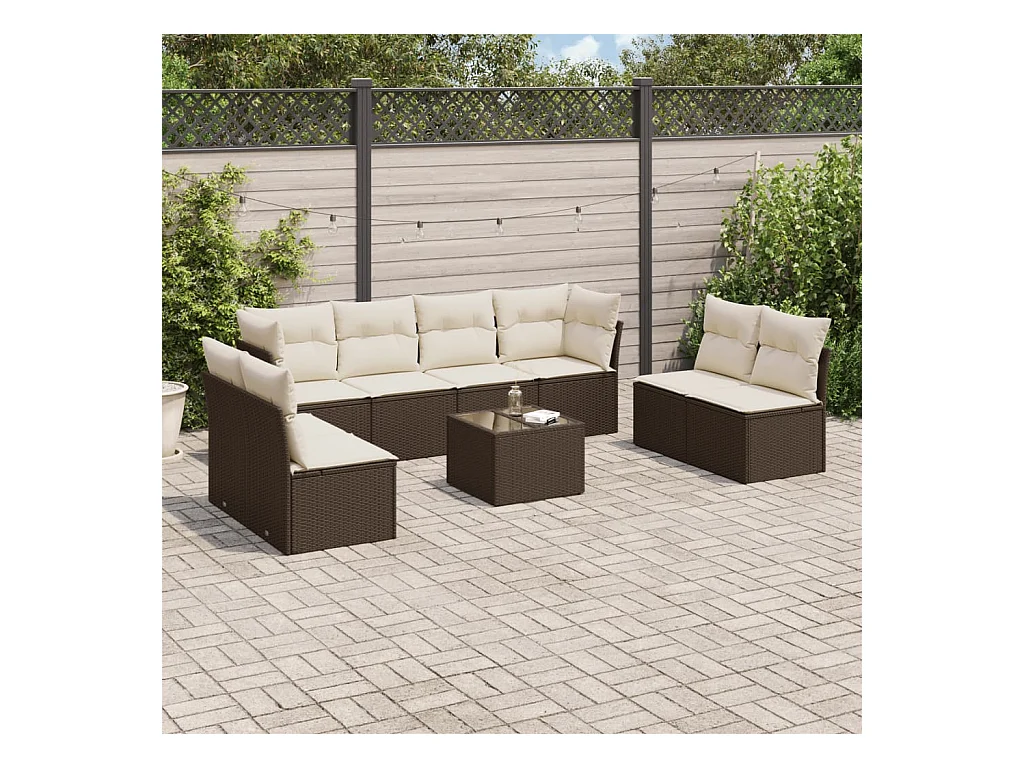 Salon de jardin avec coussins 9 pièces marron résine tressée