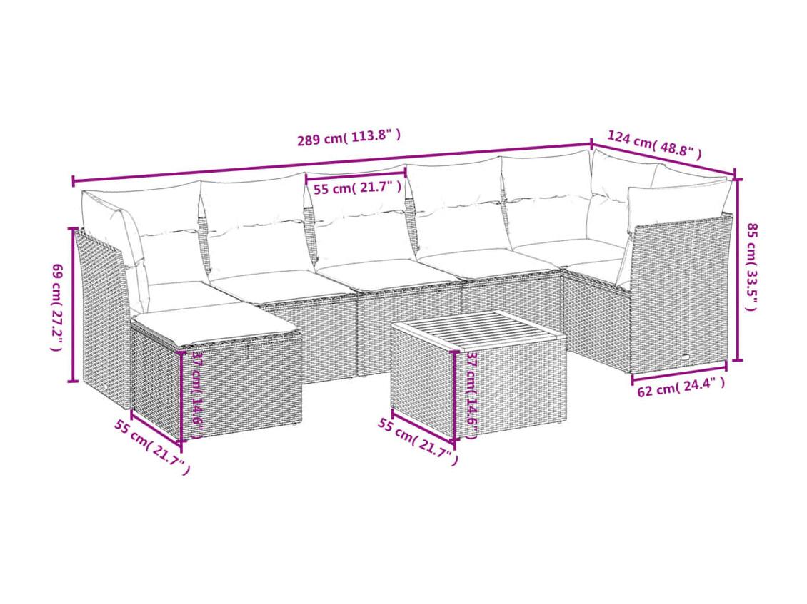 Salon de jardin avec coussins 8 pcs beige résine tressée