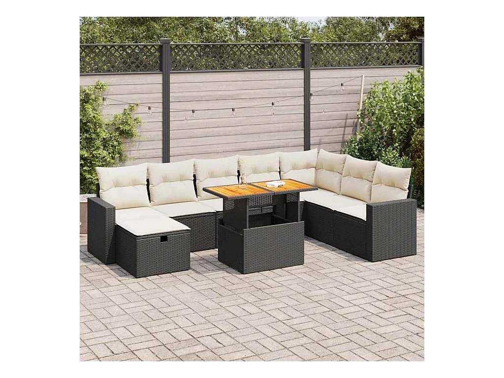 Salon de jardin avec coussins 9 pièces noir résine tressée acacia