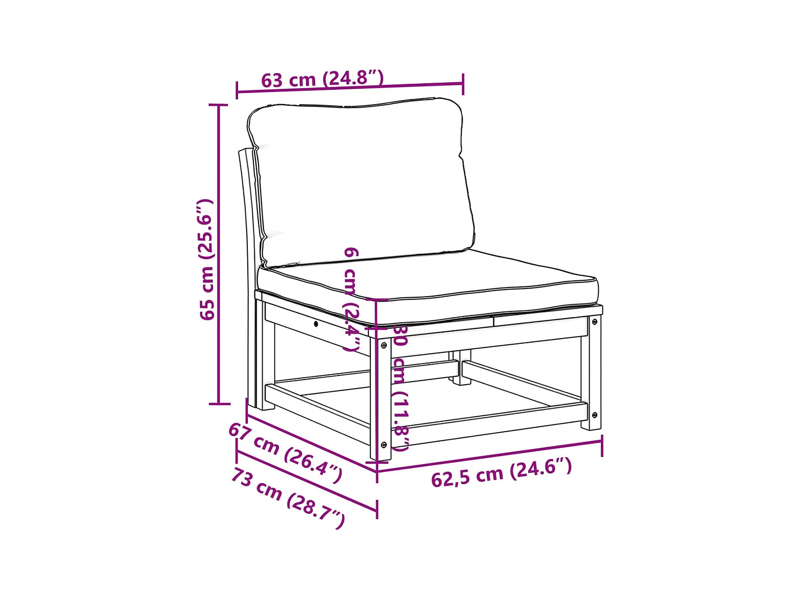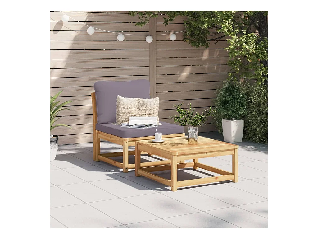 Salon de jardin 3 pcs avec coussins bois massif d'acacia