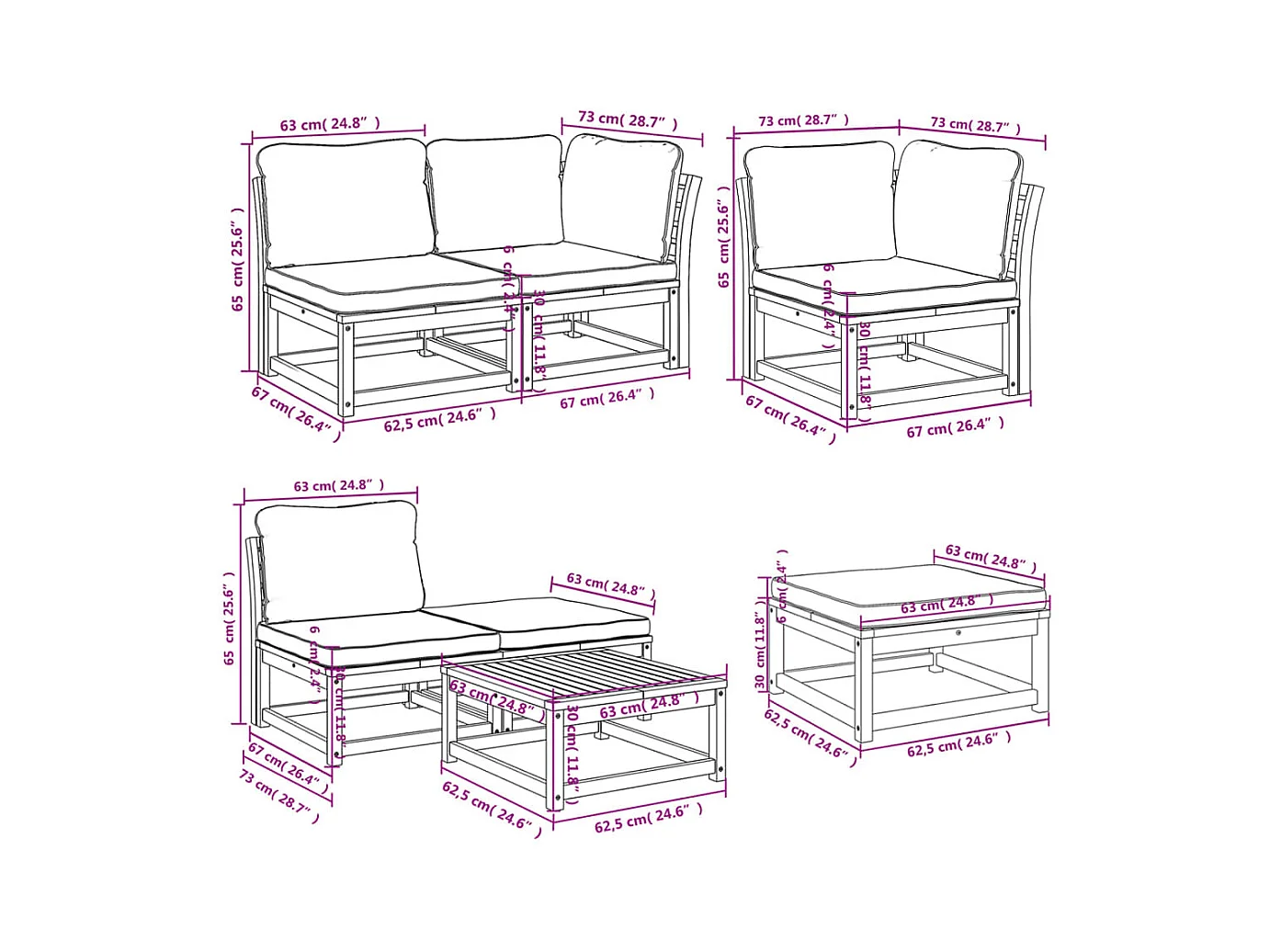 Salon de jardin 6 pcs avec coussins bois d'acacia solide