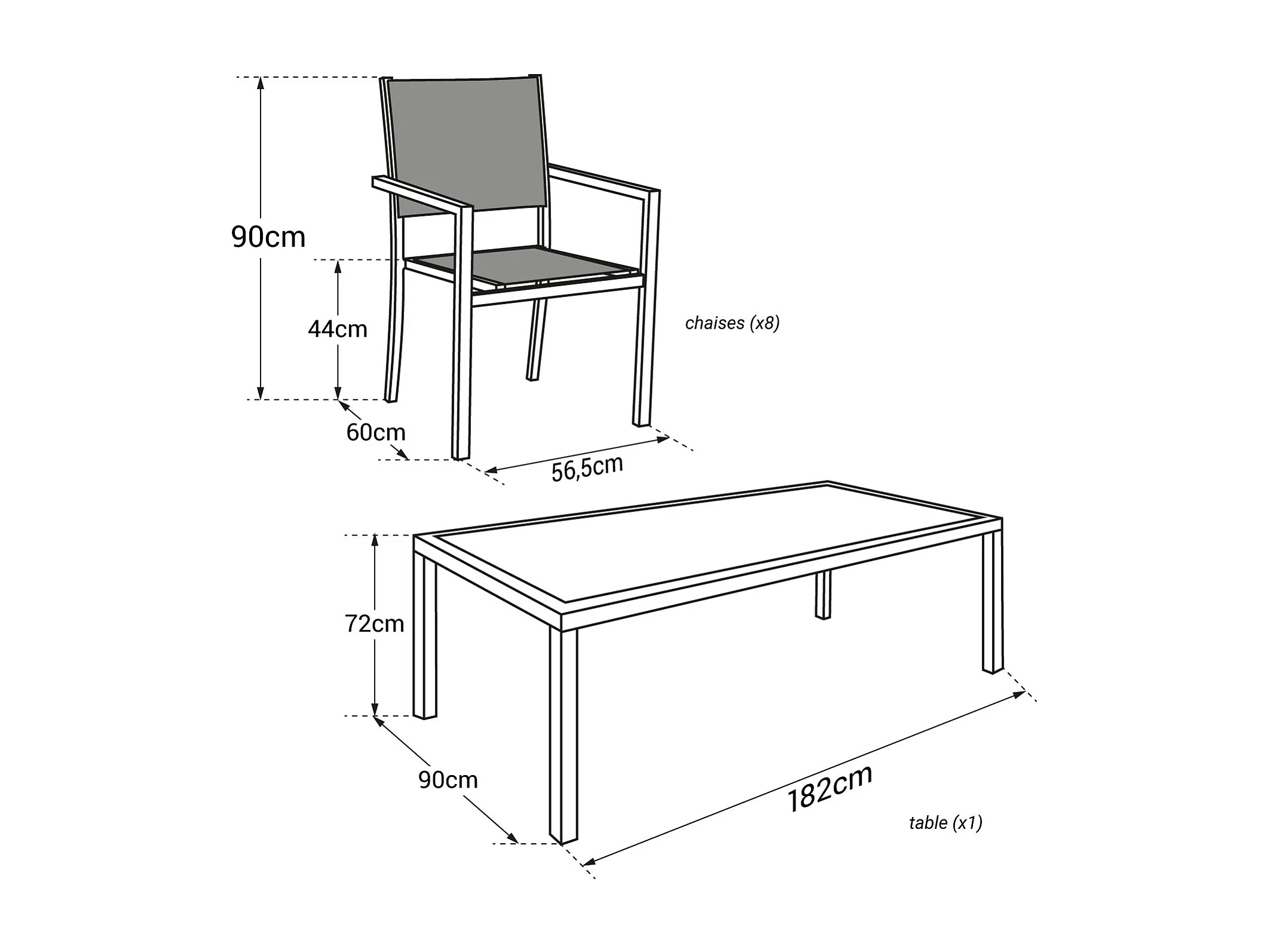 Salon de jardin BARI en textilène taupe 8 places - aluminium taupe