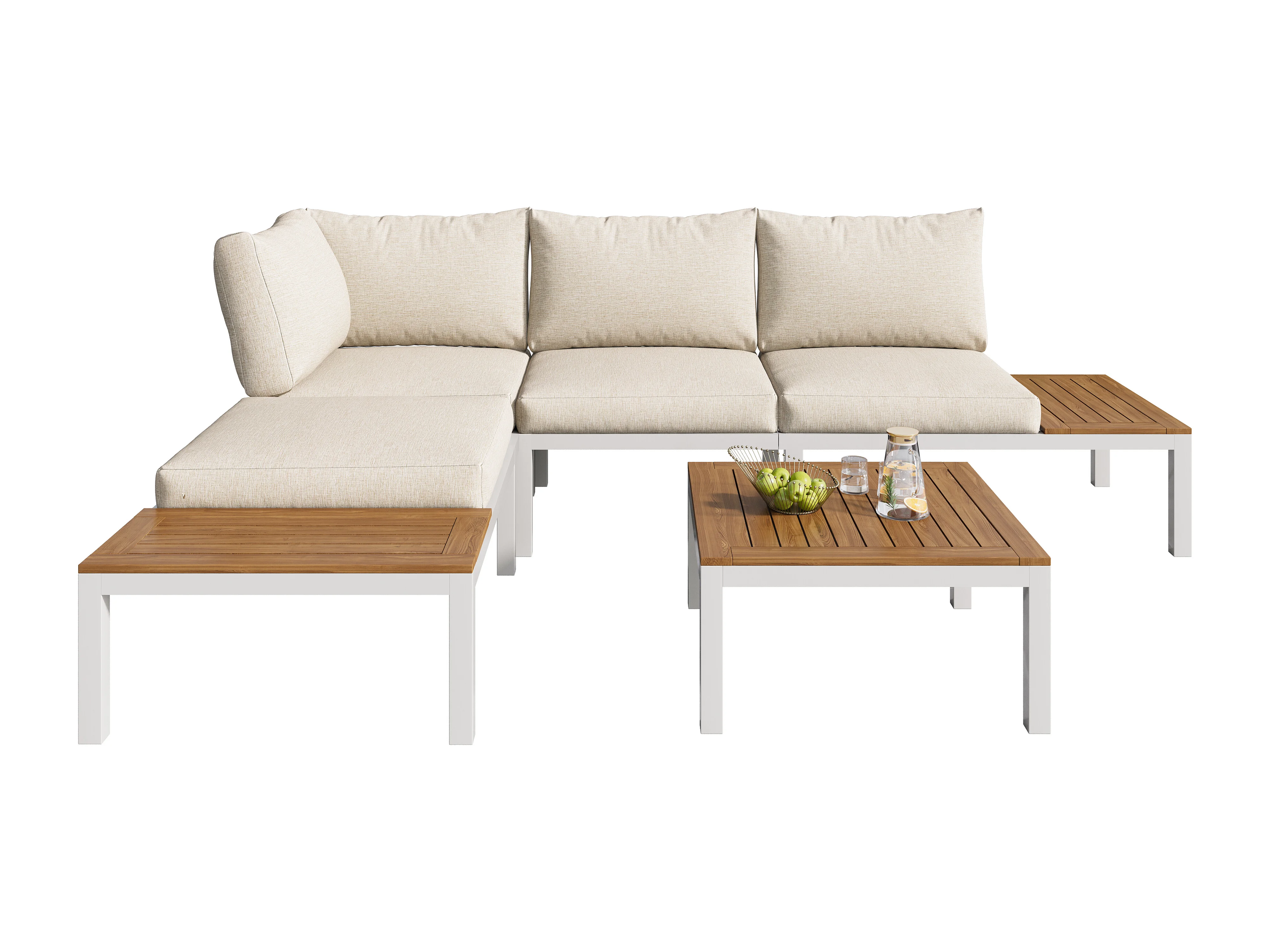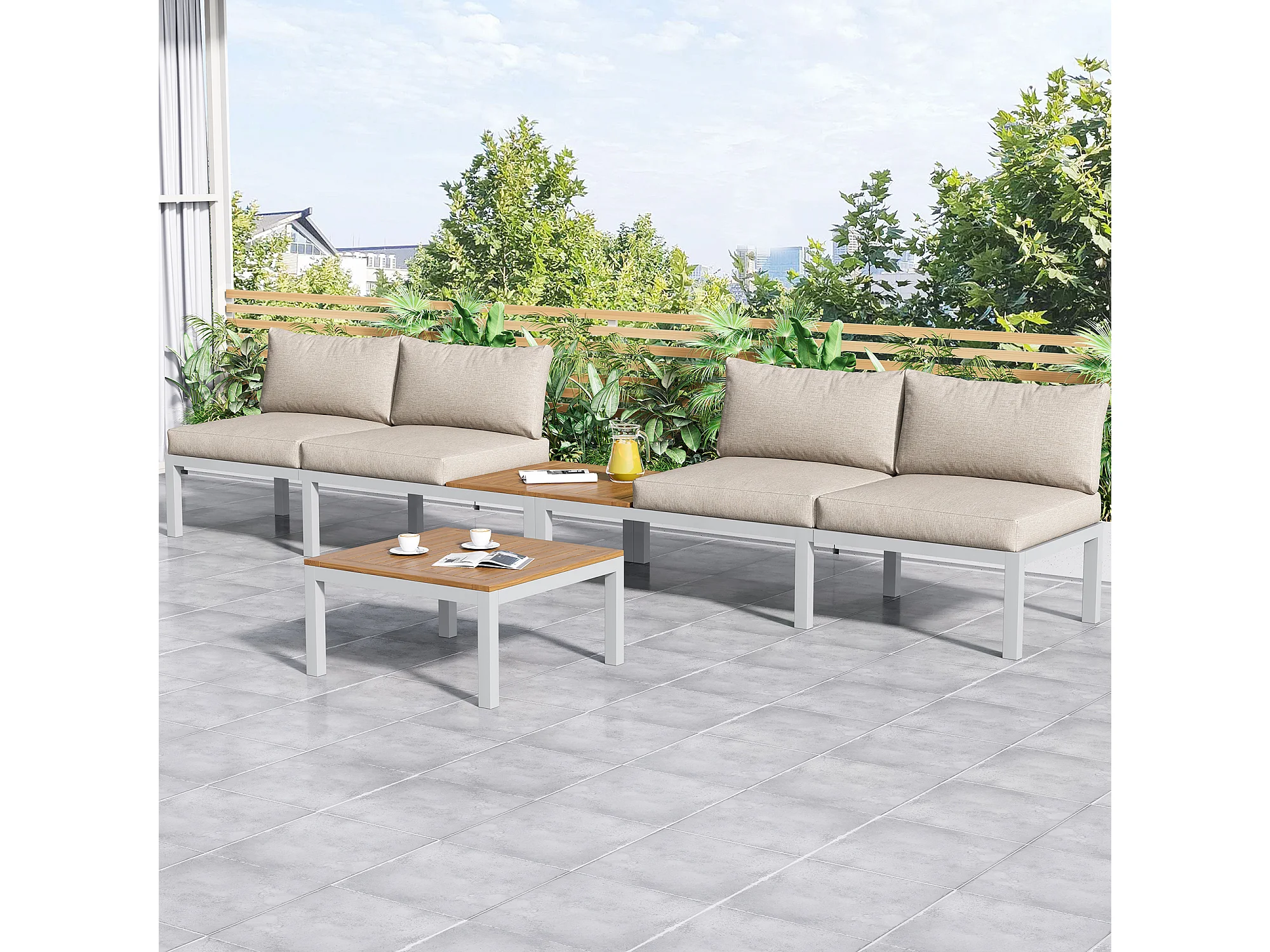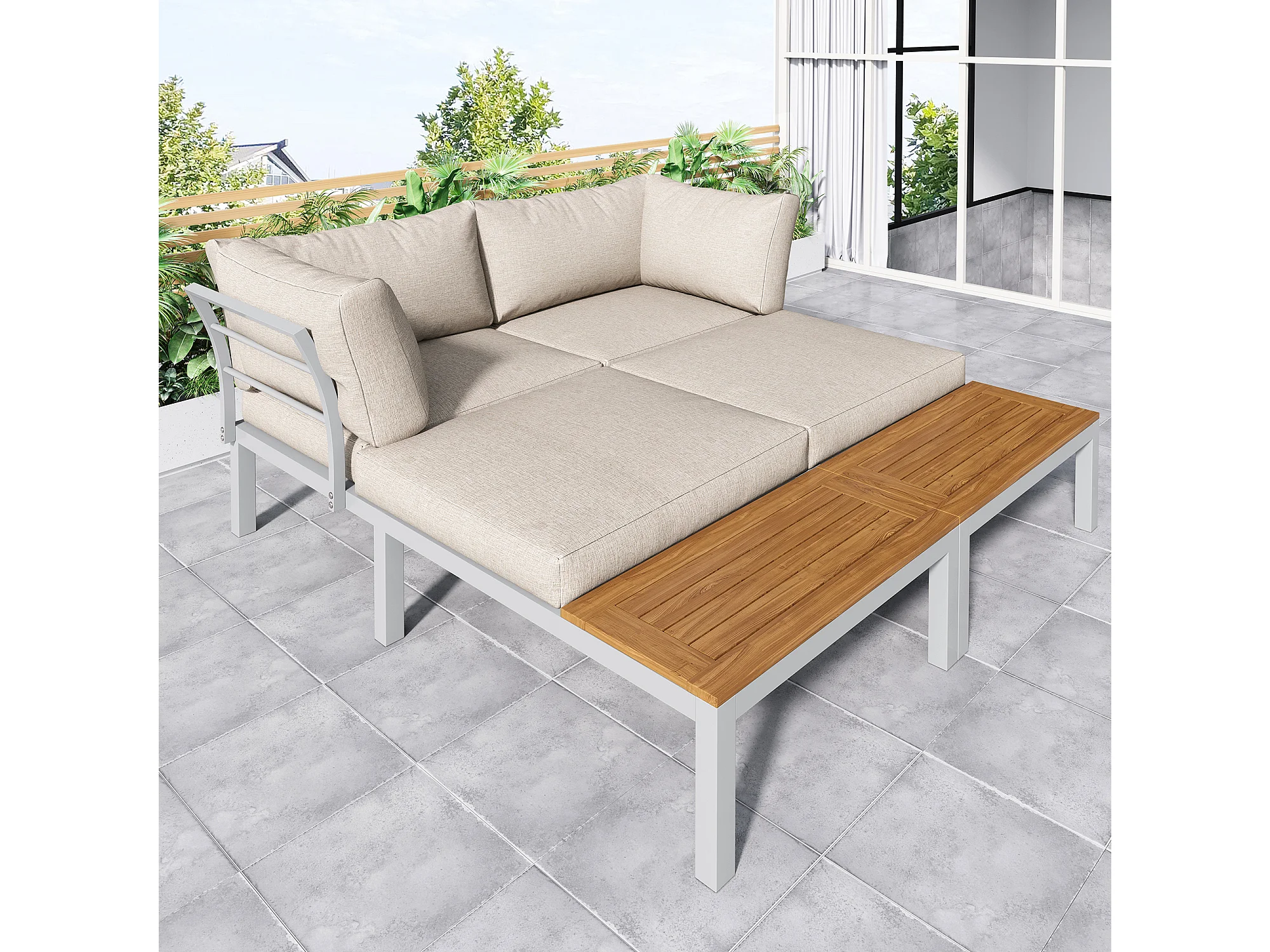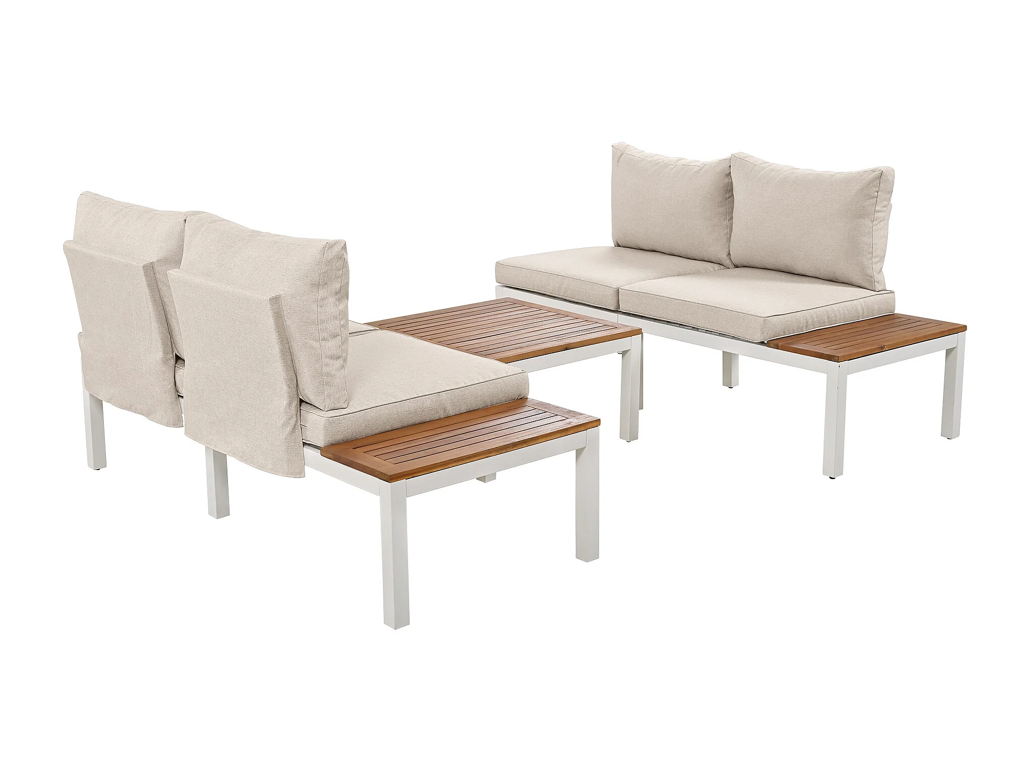 Salon de jardin, 120x60x66 cm, 2 canapés 2 places, coussins, pieds réglables, fer galvanisé, beige