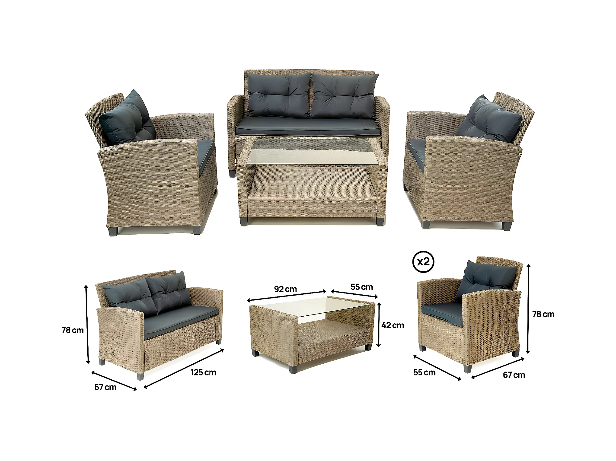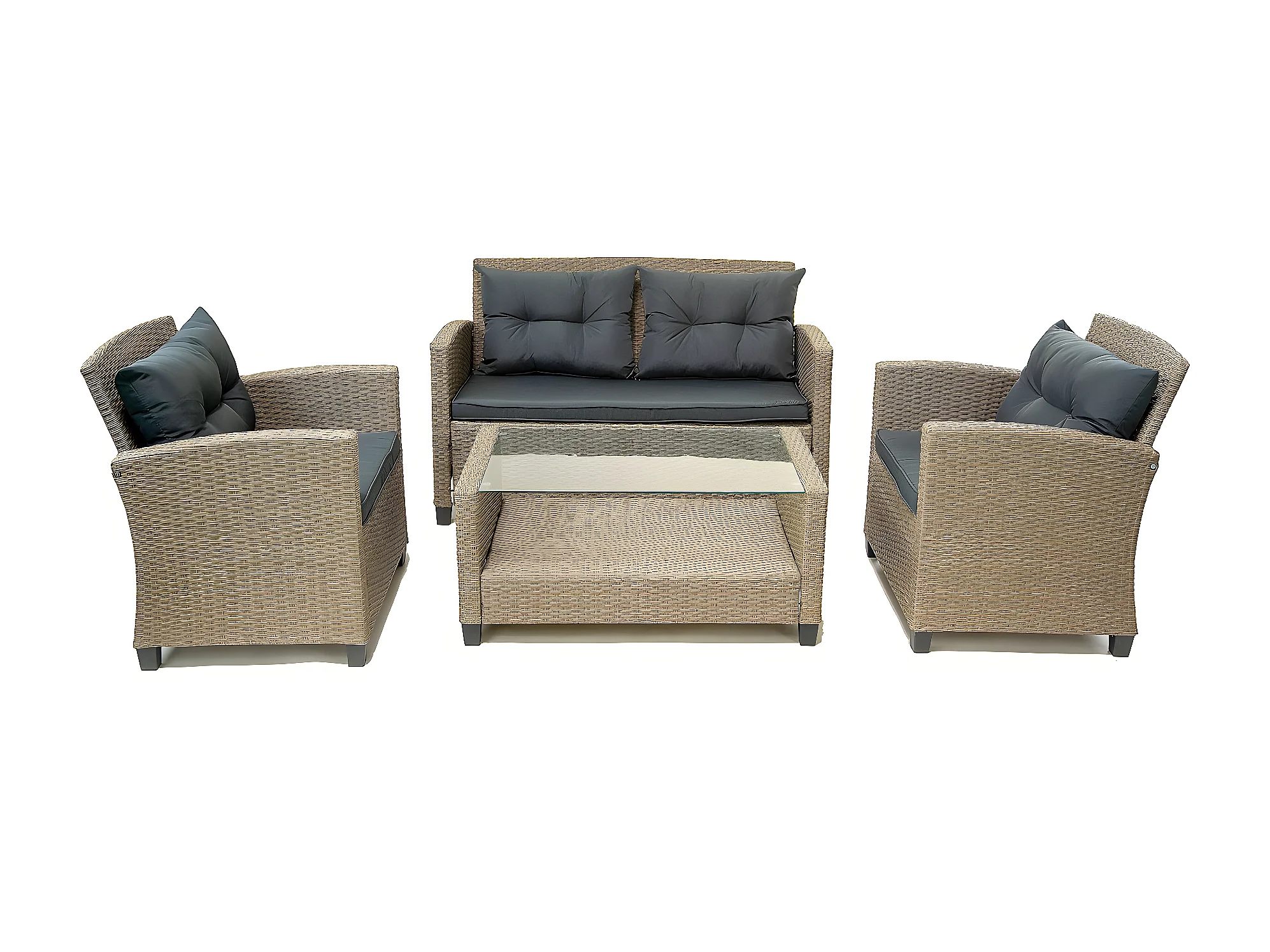 Salon de jardin bas 4 places en résine "Joe" - Beige/Gris