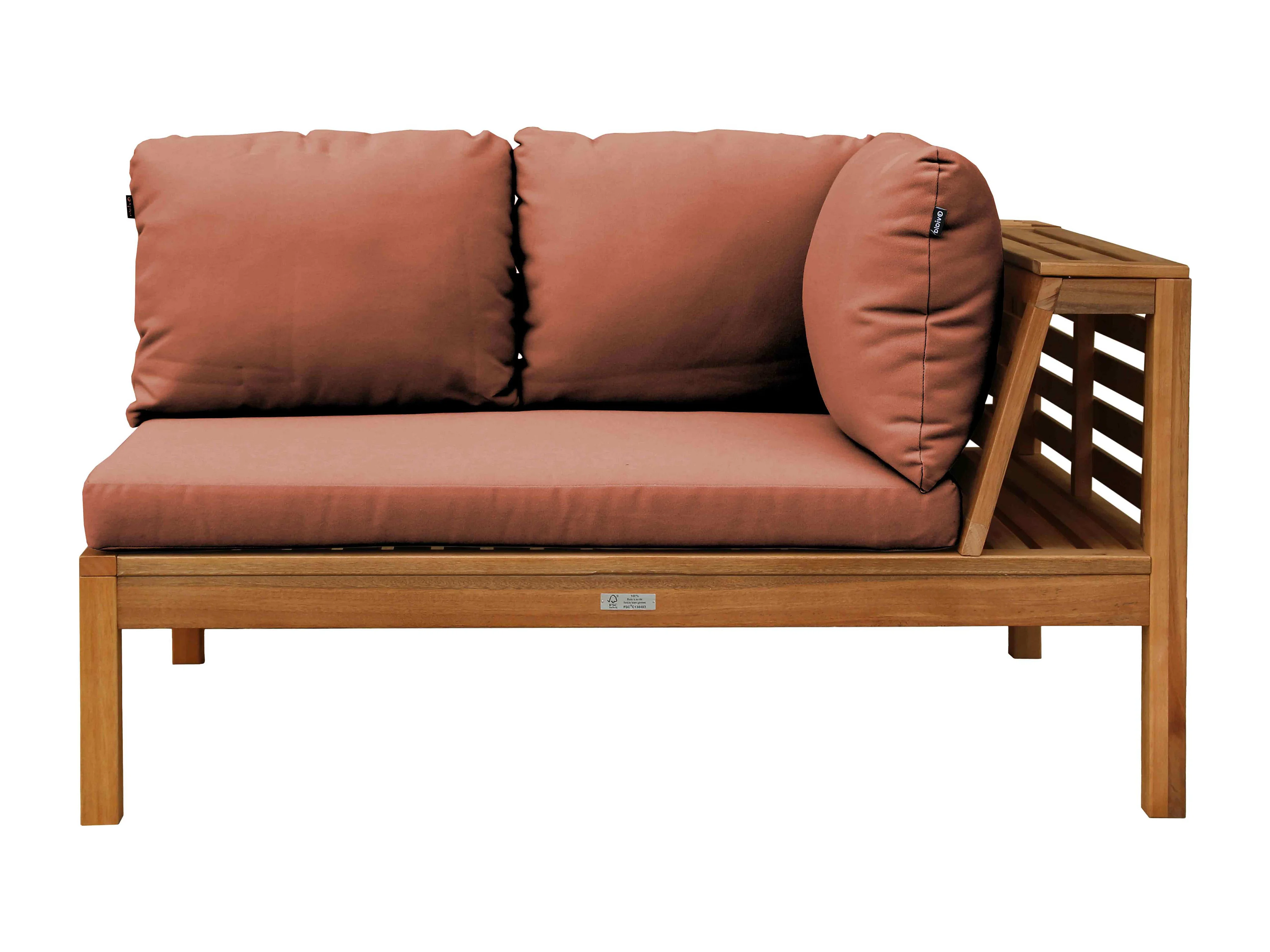 Salon de jardin bas d'angle 2 canapés, 1 fauteuil et une table