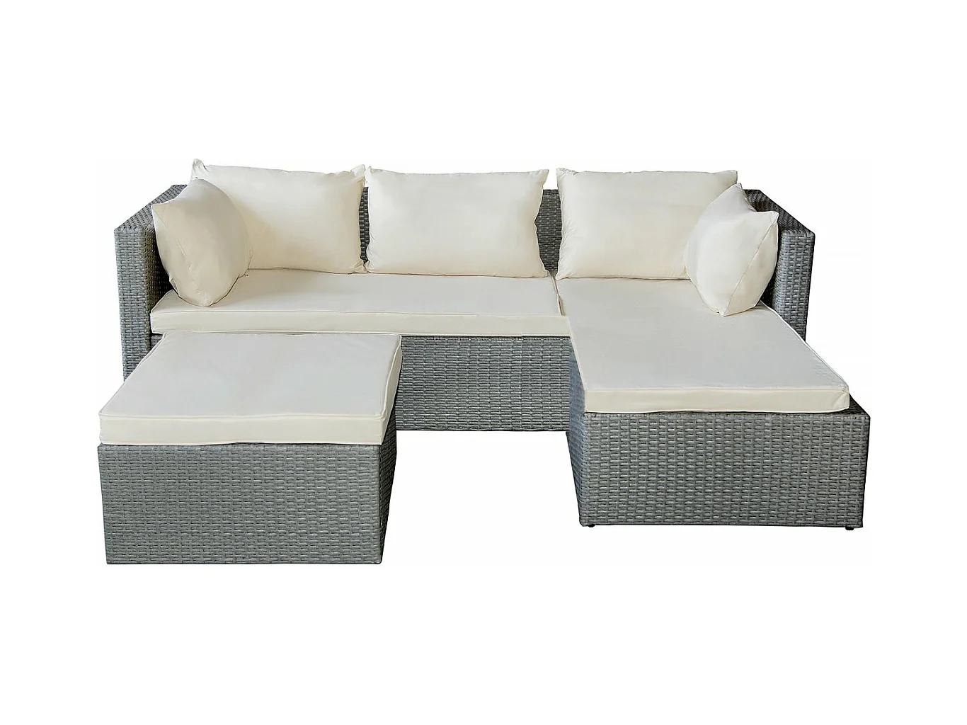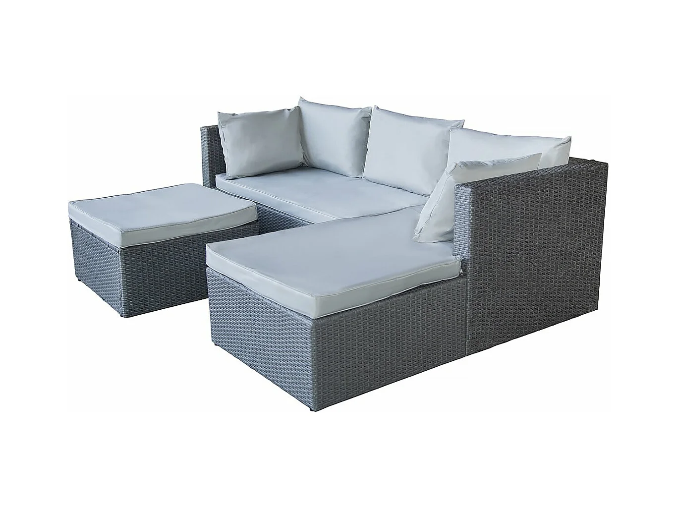 Salon de jardin bas en résine tressée "Diya" 3 places - Gris clair