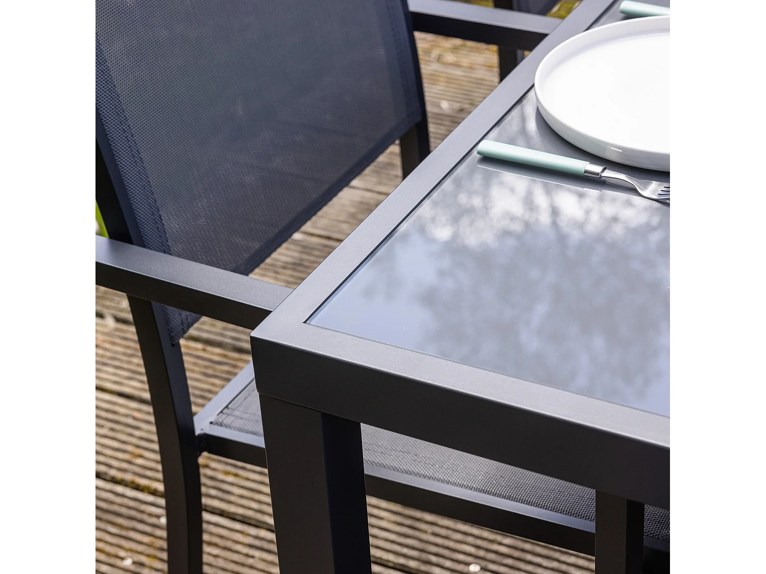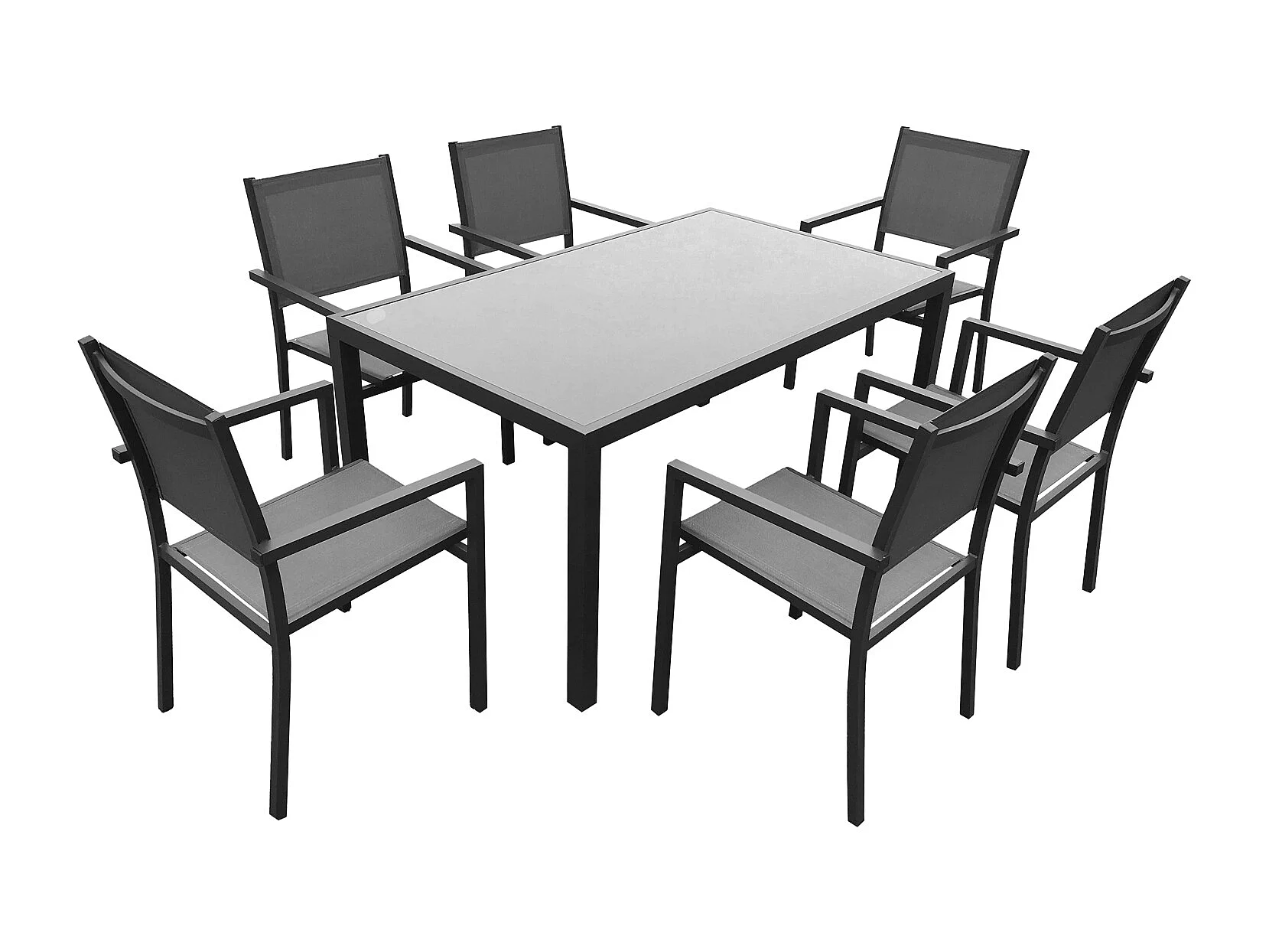 Salon de jardin BERGAMO en textilène gris 6 places - aluminium anthracite - HAPPY GARDEN