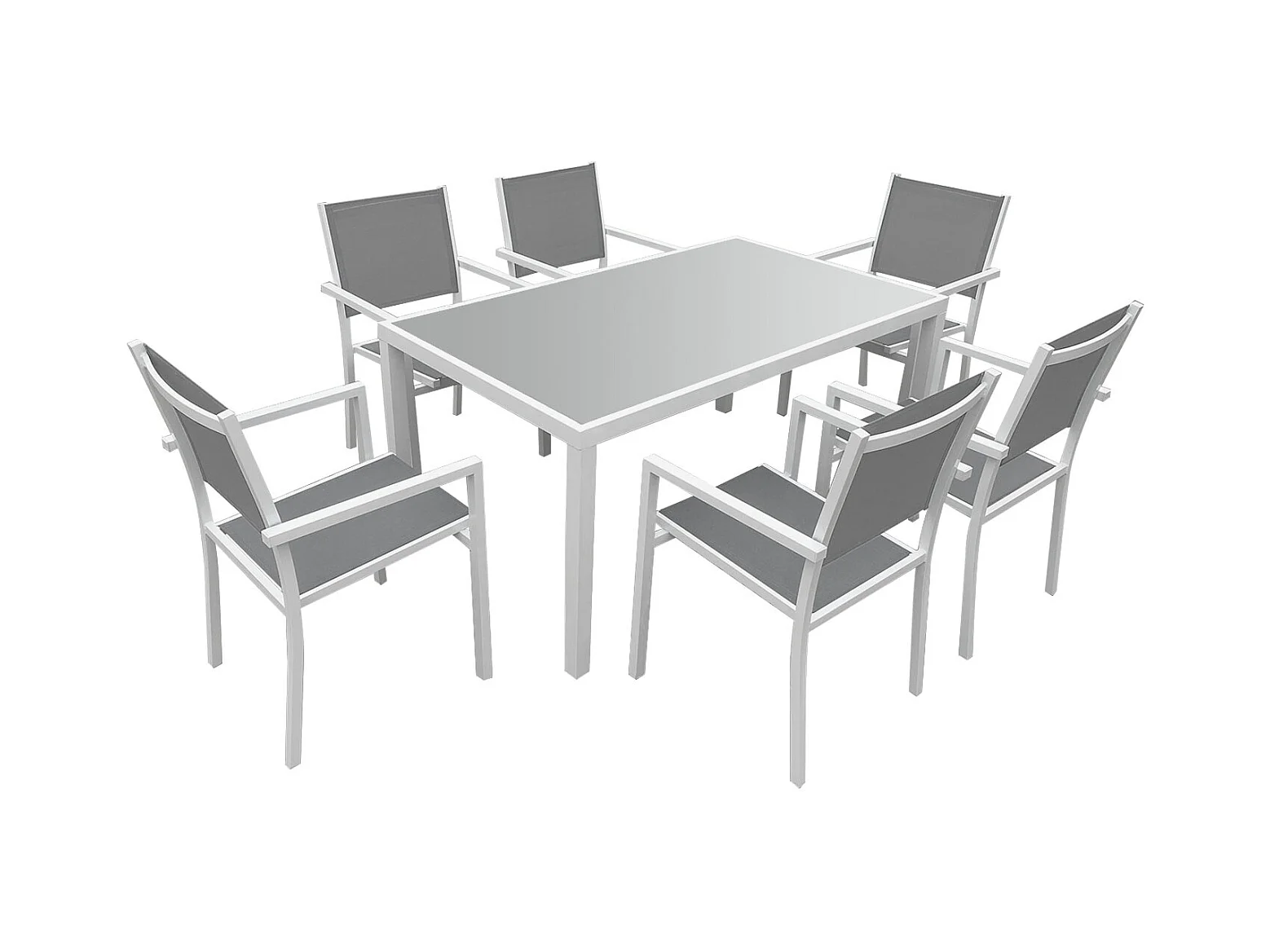 Salon de jardin BERGAMO en textilène gris 6 places - aluminium blanc - HAPPY GARDEN