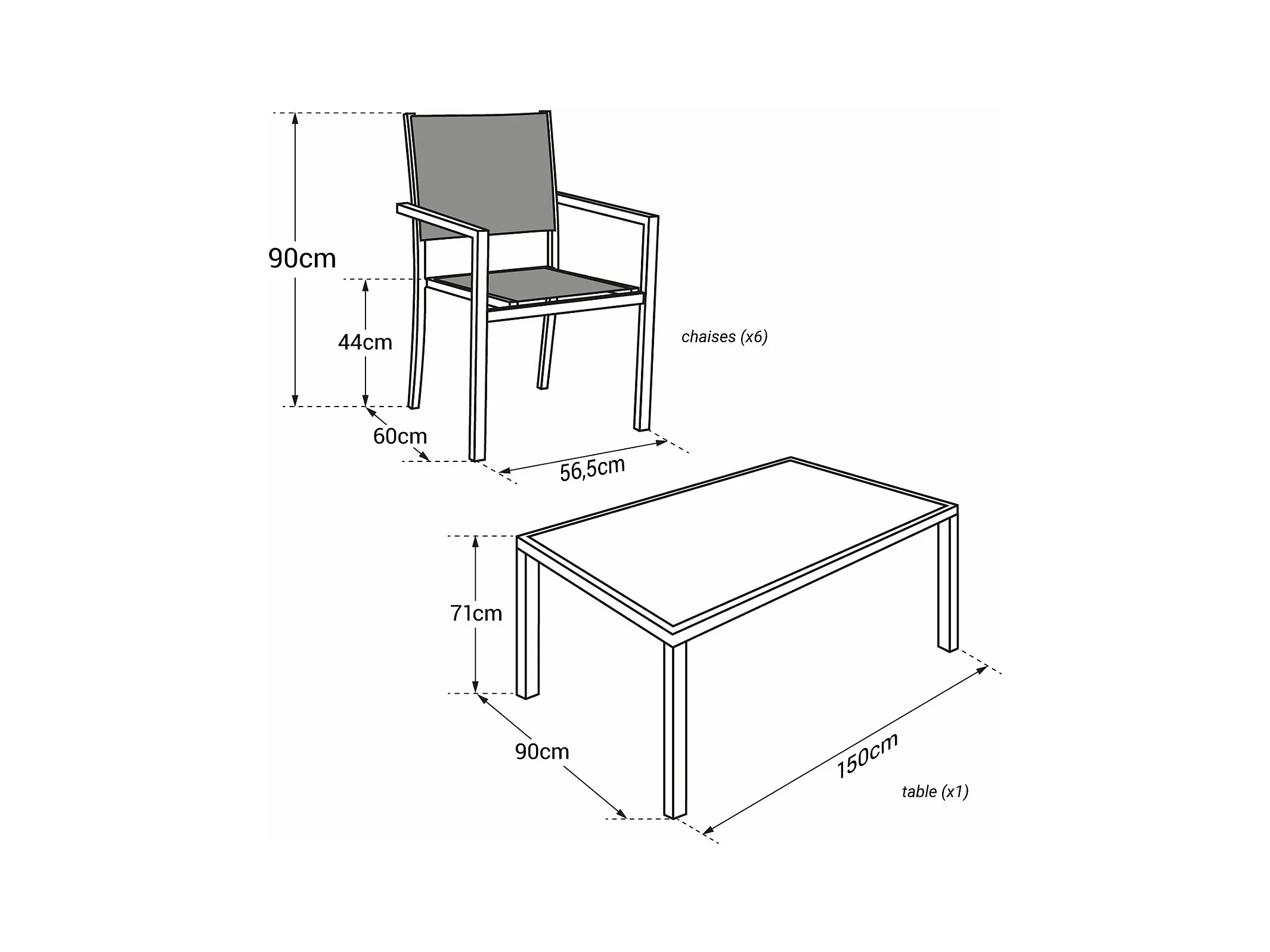 Table de jardin et 6 chaises en aluminium et acier gris ALASSIO