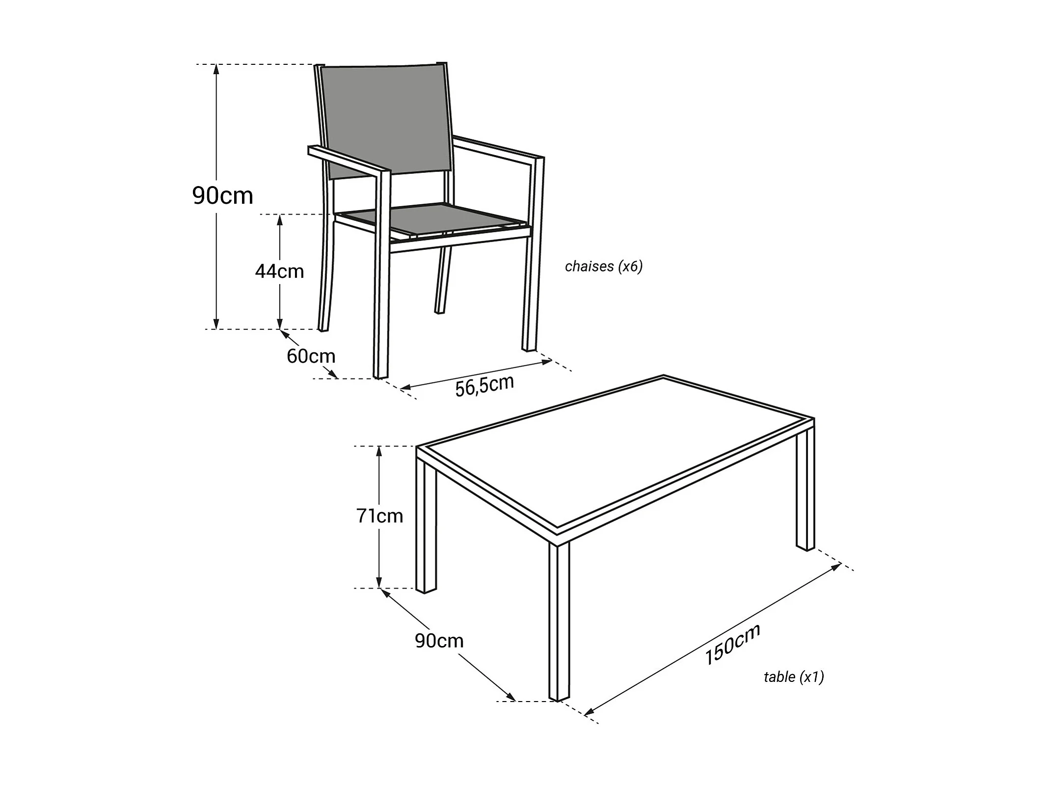 Salon de jardin BERGAMO en textilène taupe 6 places - aluminium taupe