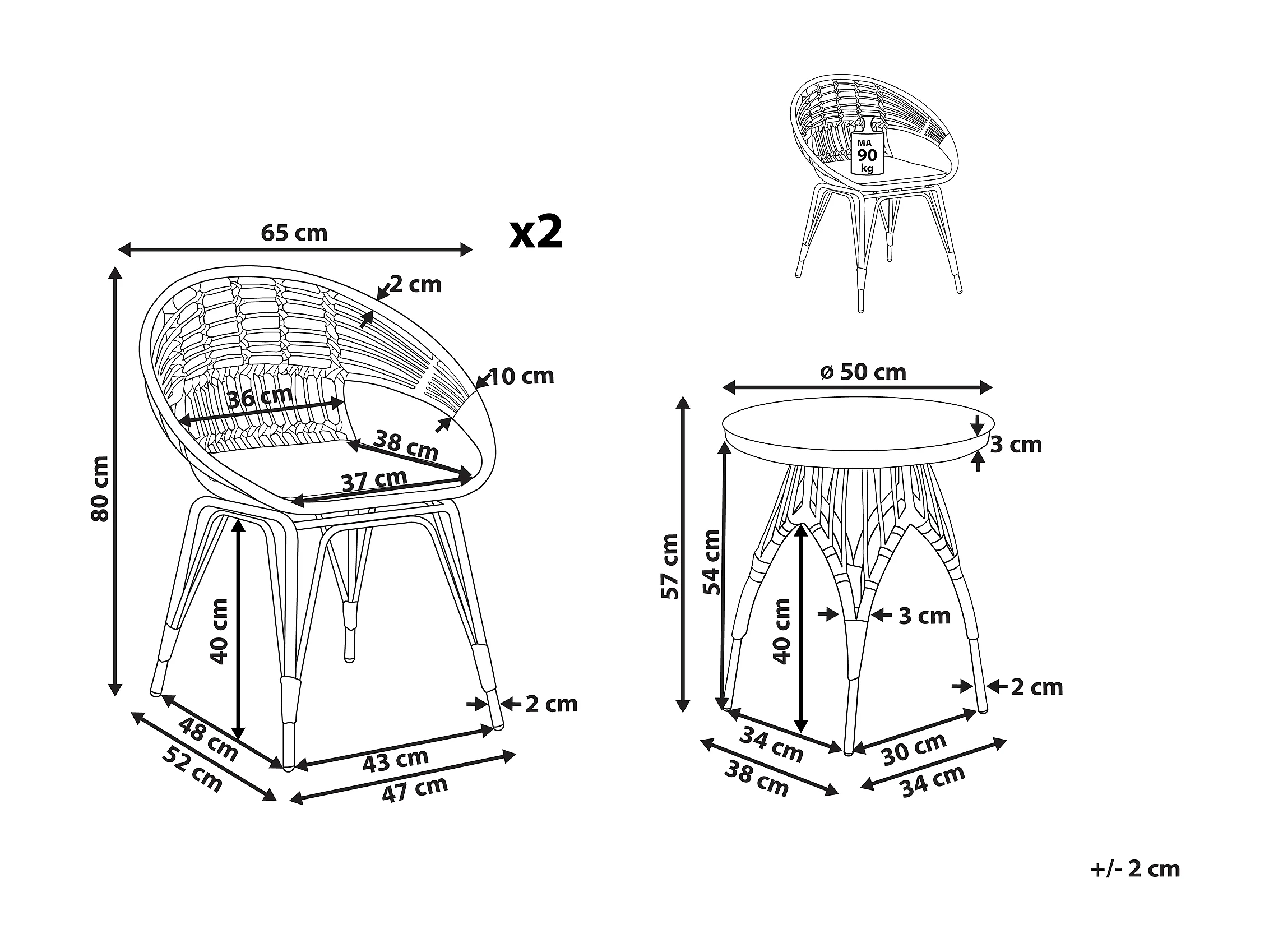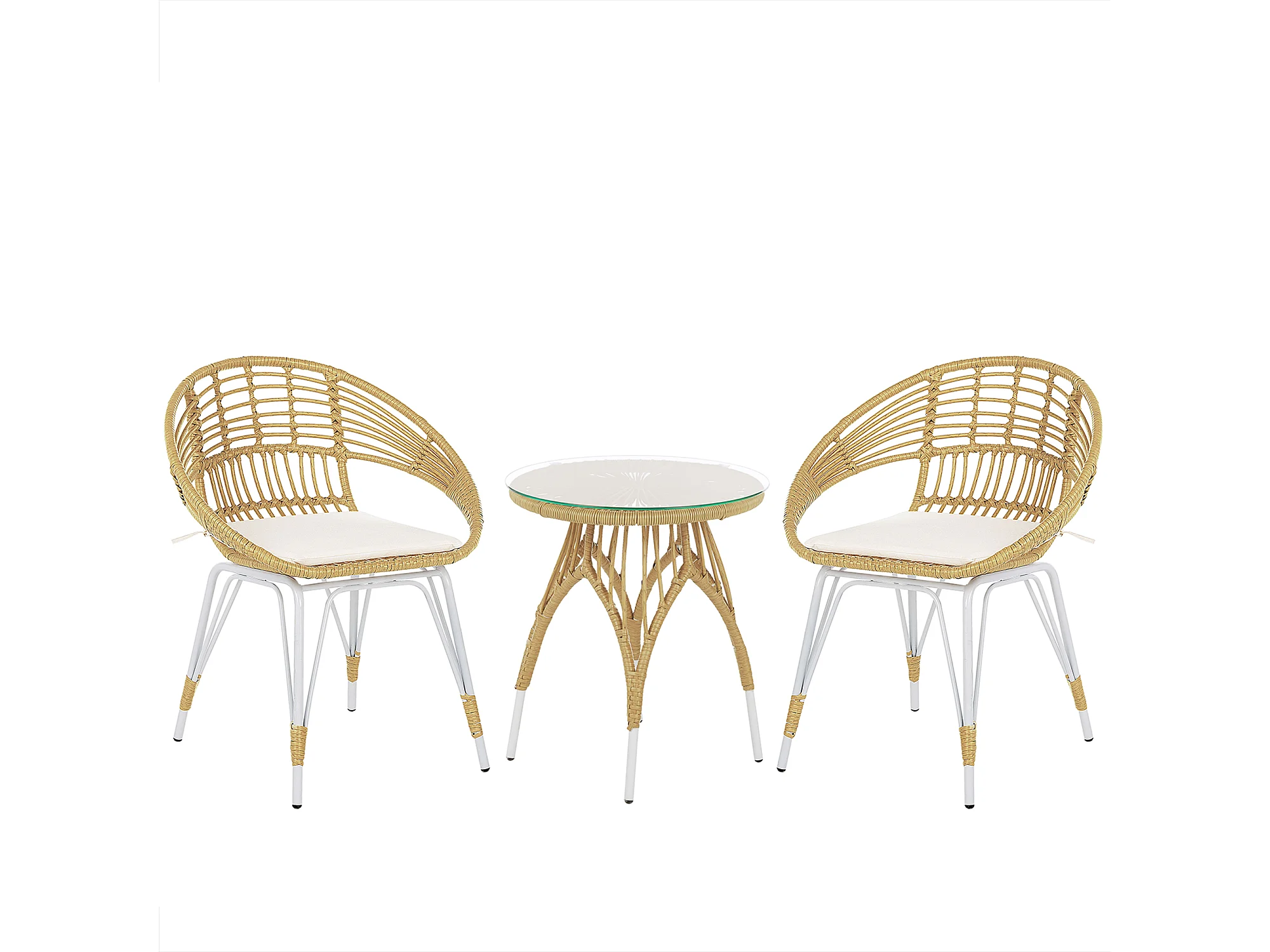 Salon de jardin bistrot en rotin clair / pieds blancs PELLARO