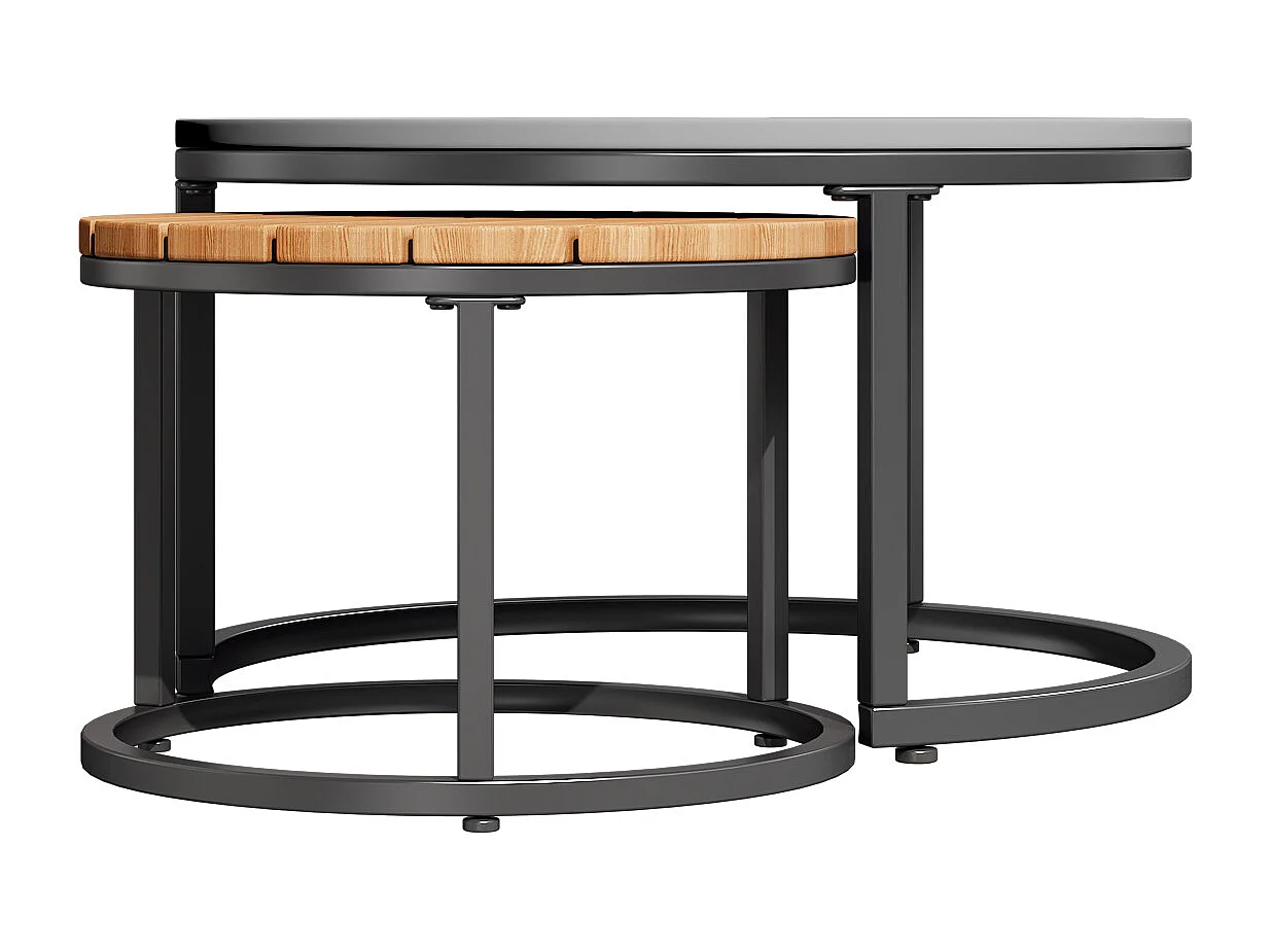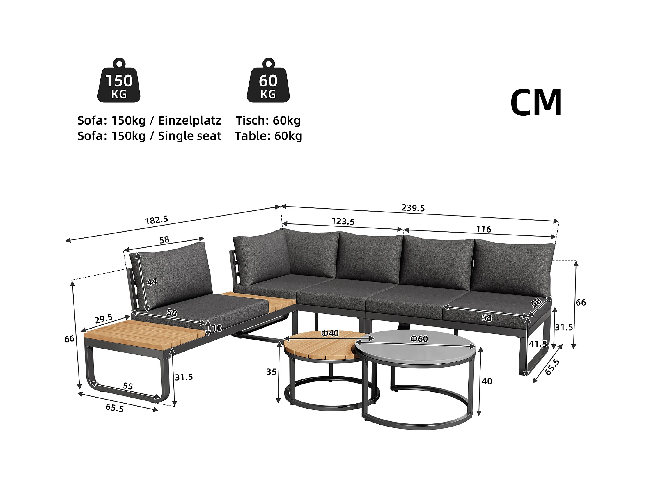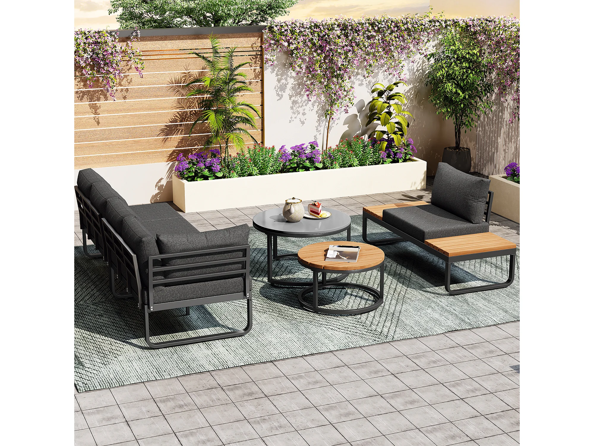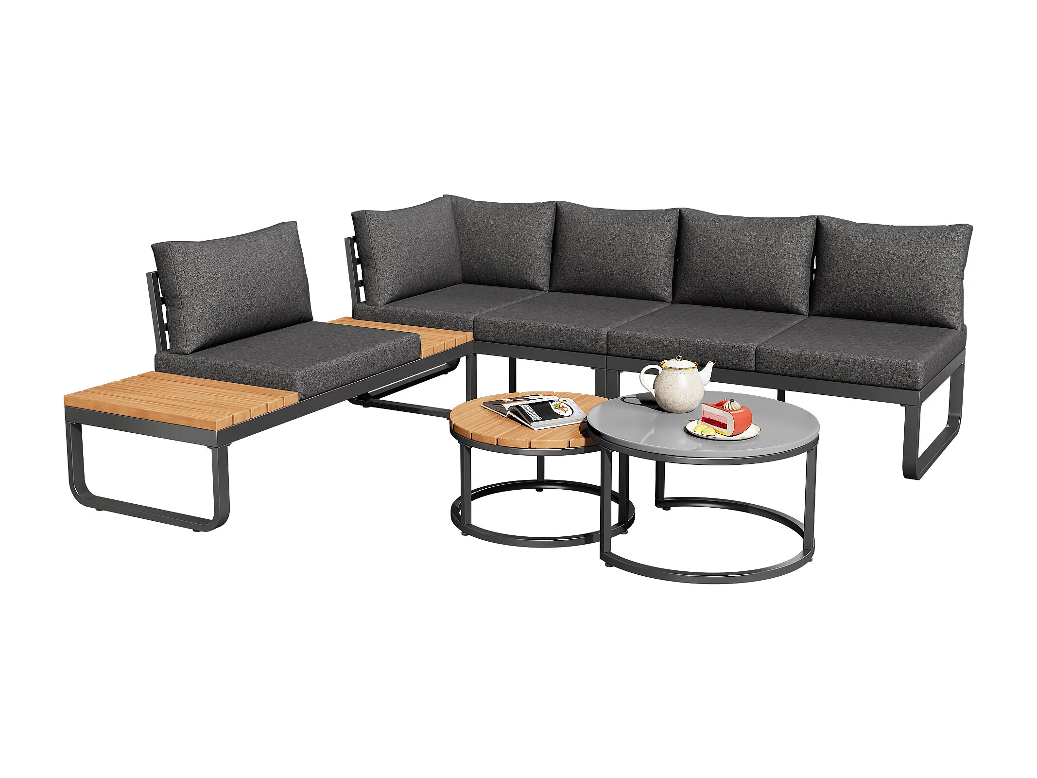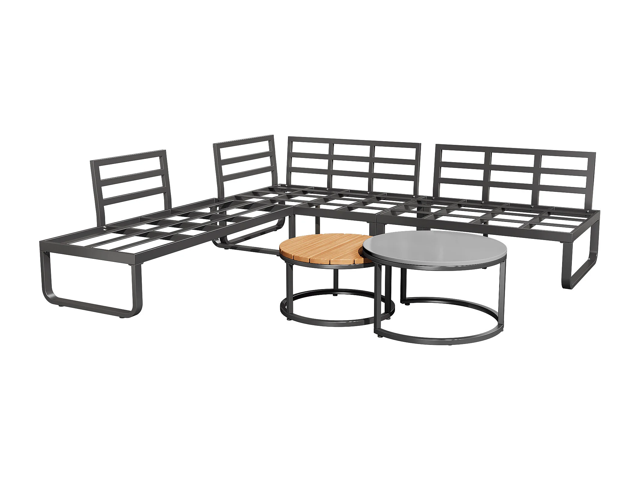 Salon de jardin cadre en fer galvanisé - 2 canapés modulables 2 places, 1 canapé simple et 2 table basses, gris