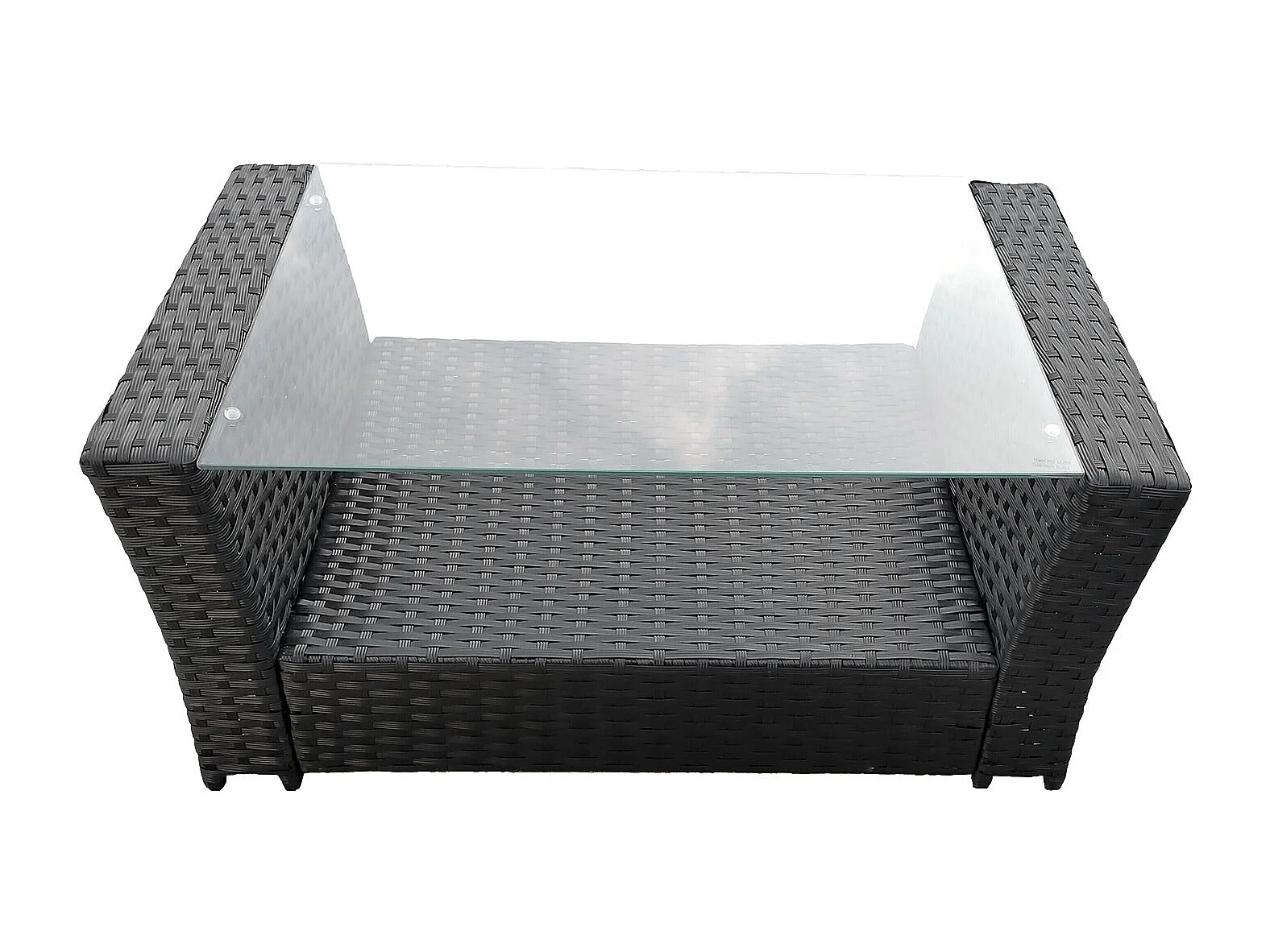 Salon de jardin COMINO en résine tressée noir 4 places - coussins gris