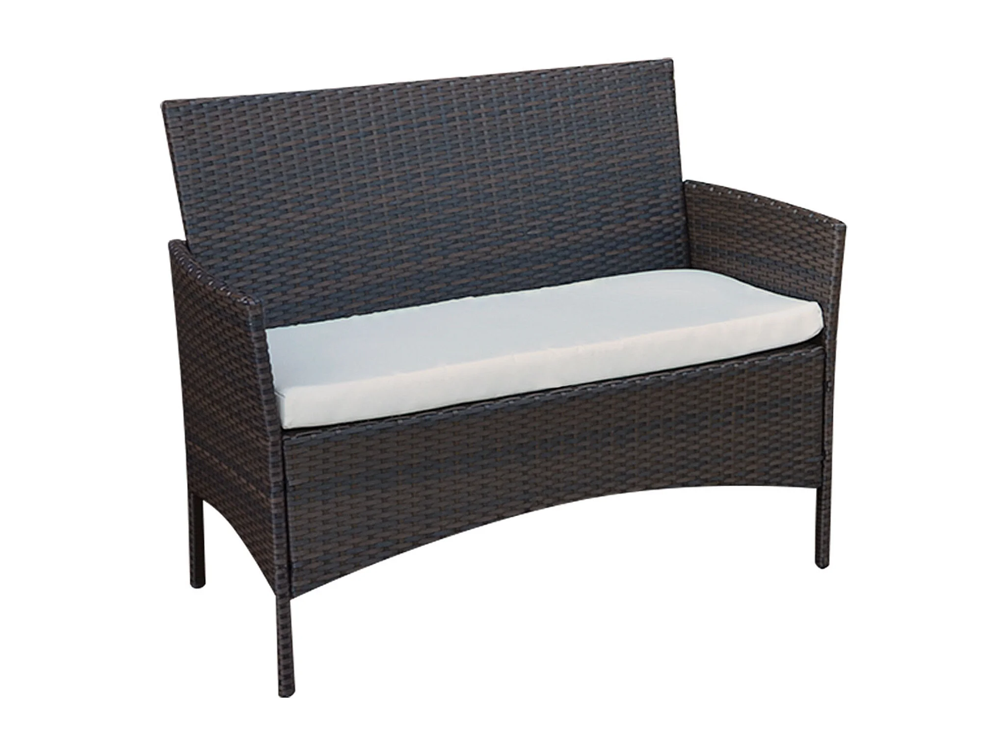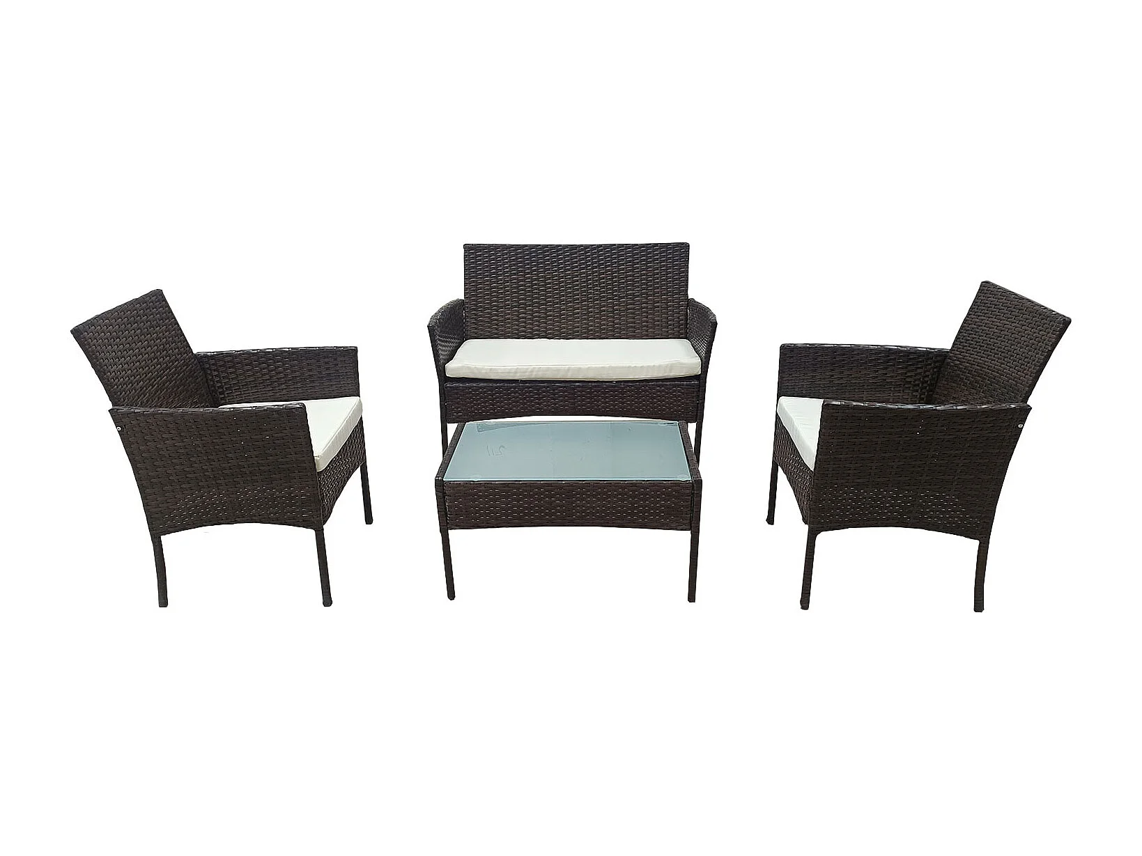 Salon de jardin CORFOU en résine tressée marron 4 places - coussins beige - HAPPY GARDEN