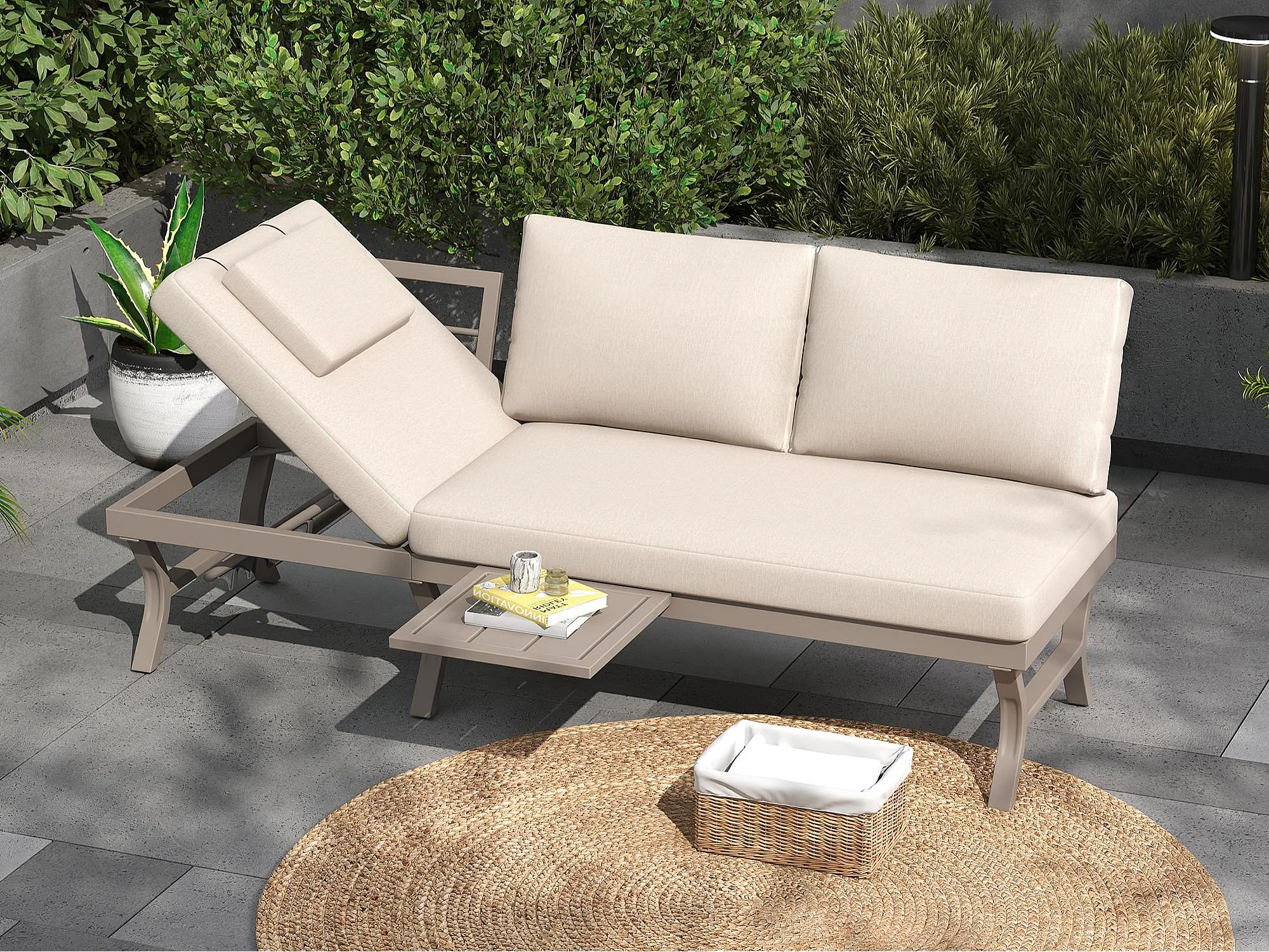 Salon de Jardin d'Angle en Acacia - Canapé avec Table Basse - Corde Tressée Artisanale - Coussins Déperlants - Beige