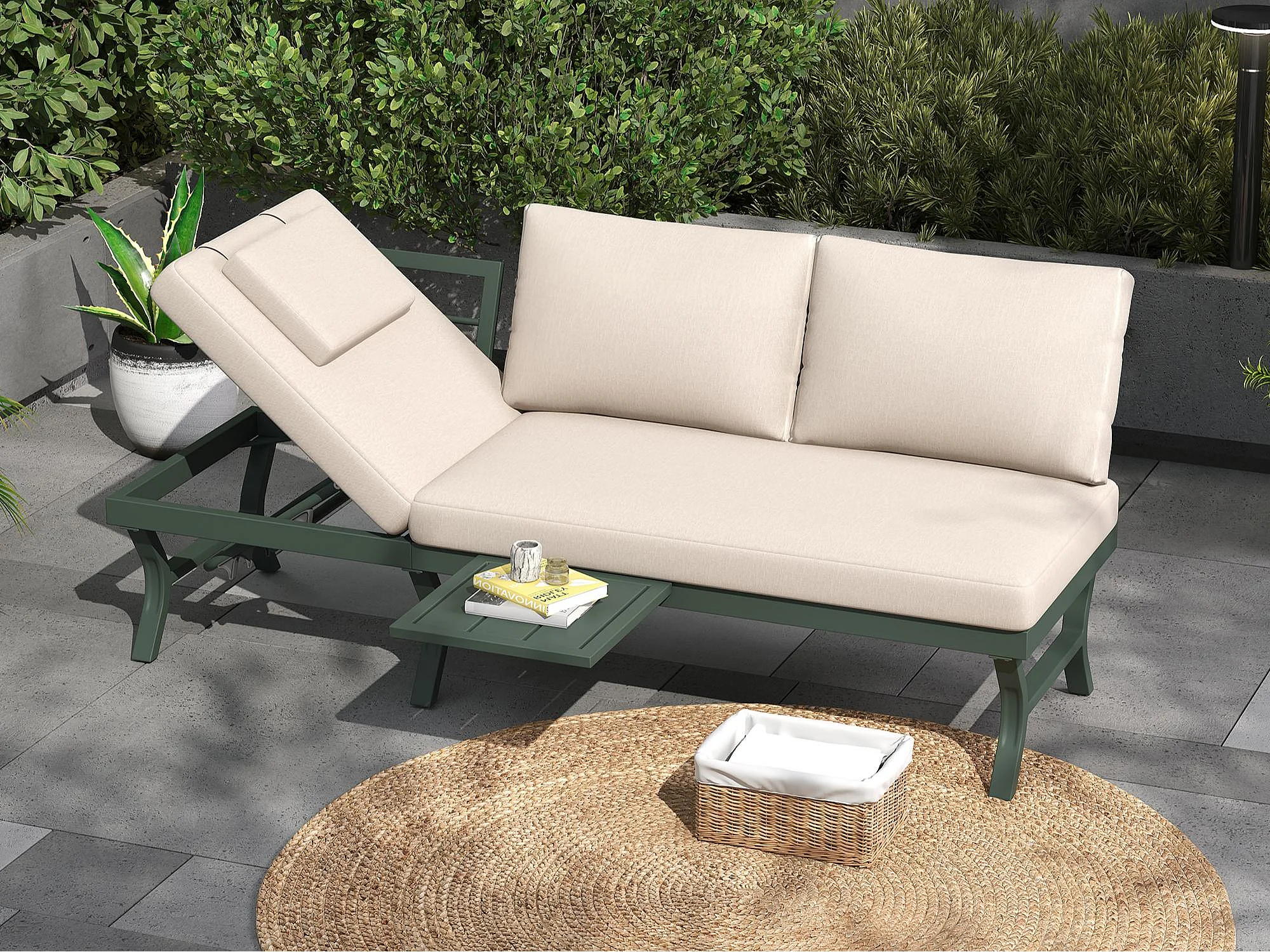 Salon de Jardin d'Angle en Acacia - Canapé avec Table Basse - Corde Tressée Artisanale - Coussins Déperlants - Vert