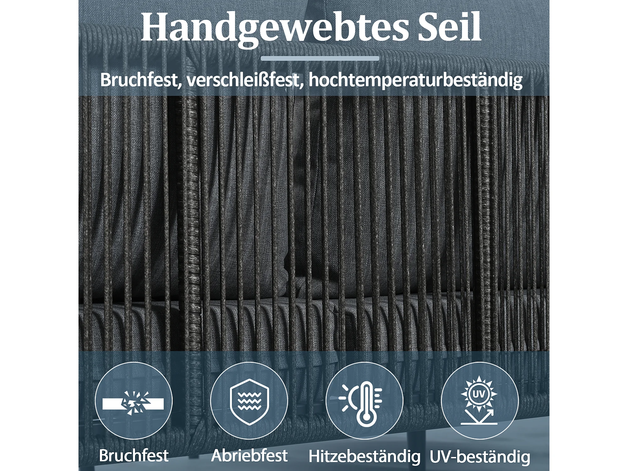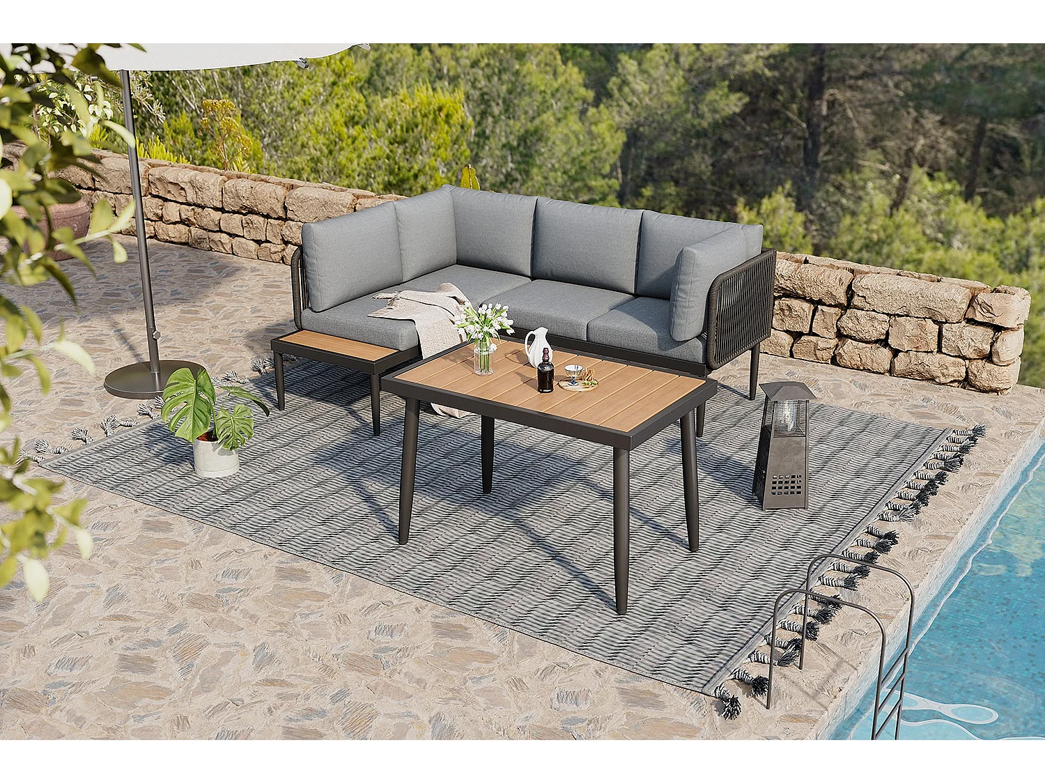 Salon de jardin d'angle 4 places en acier galvanisé : 2 canapés 2 places + 1 table rectangulaire - Beige