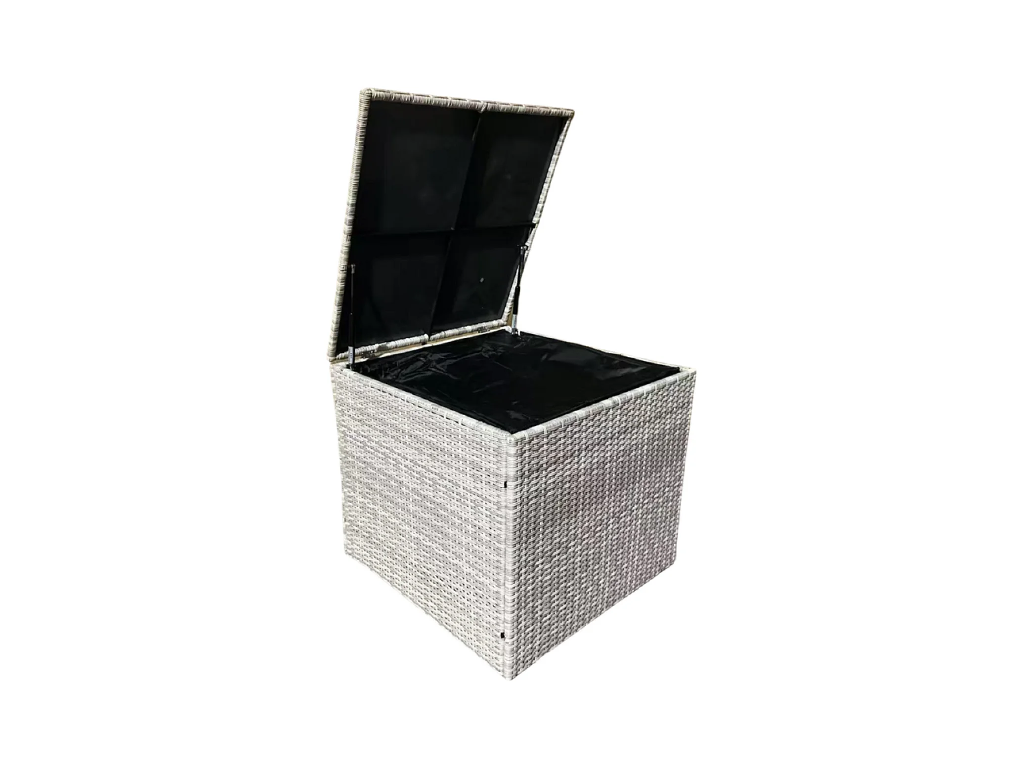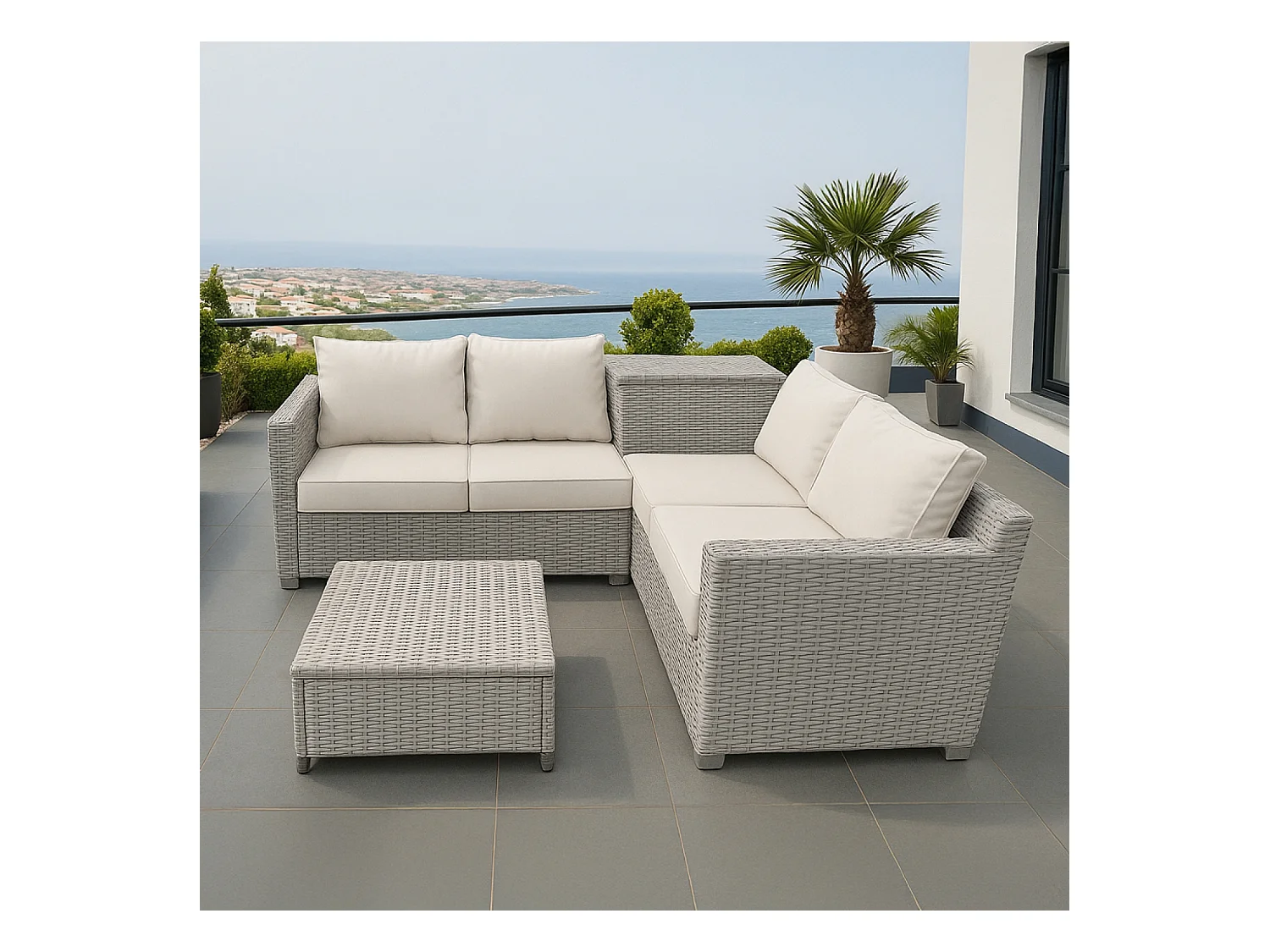 Salon de jardin d'angle 4 places en résine tressée avec coffre de rangement gris et beige ABACOS