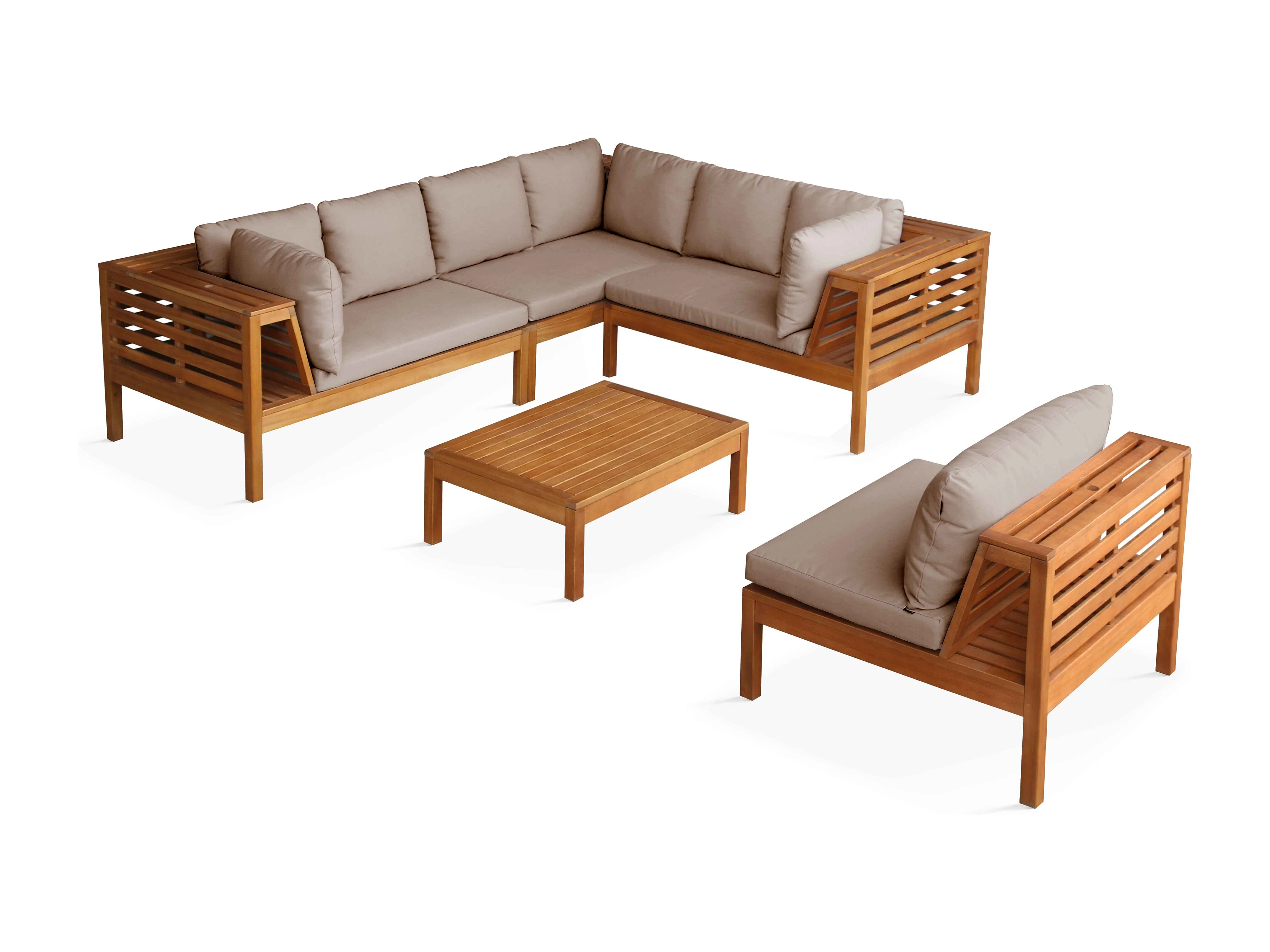 Salon de jardin d'angle 6 places en bois d'eucalyptus taupe Maupiti