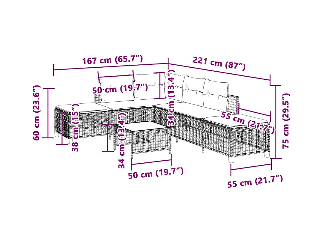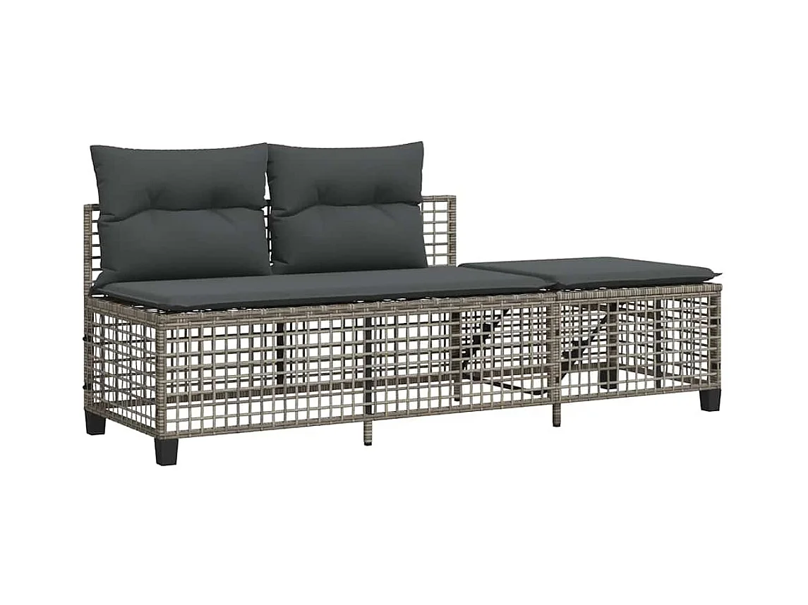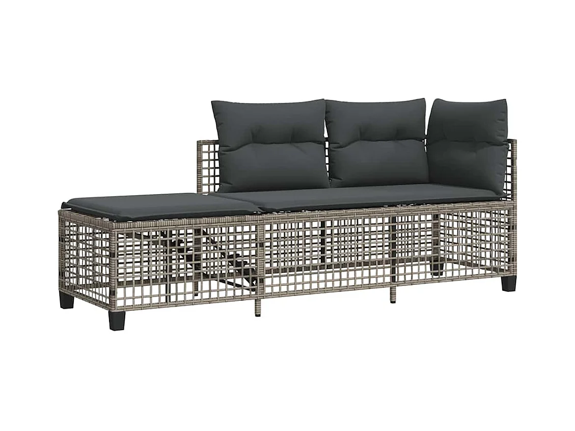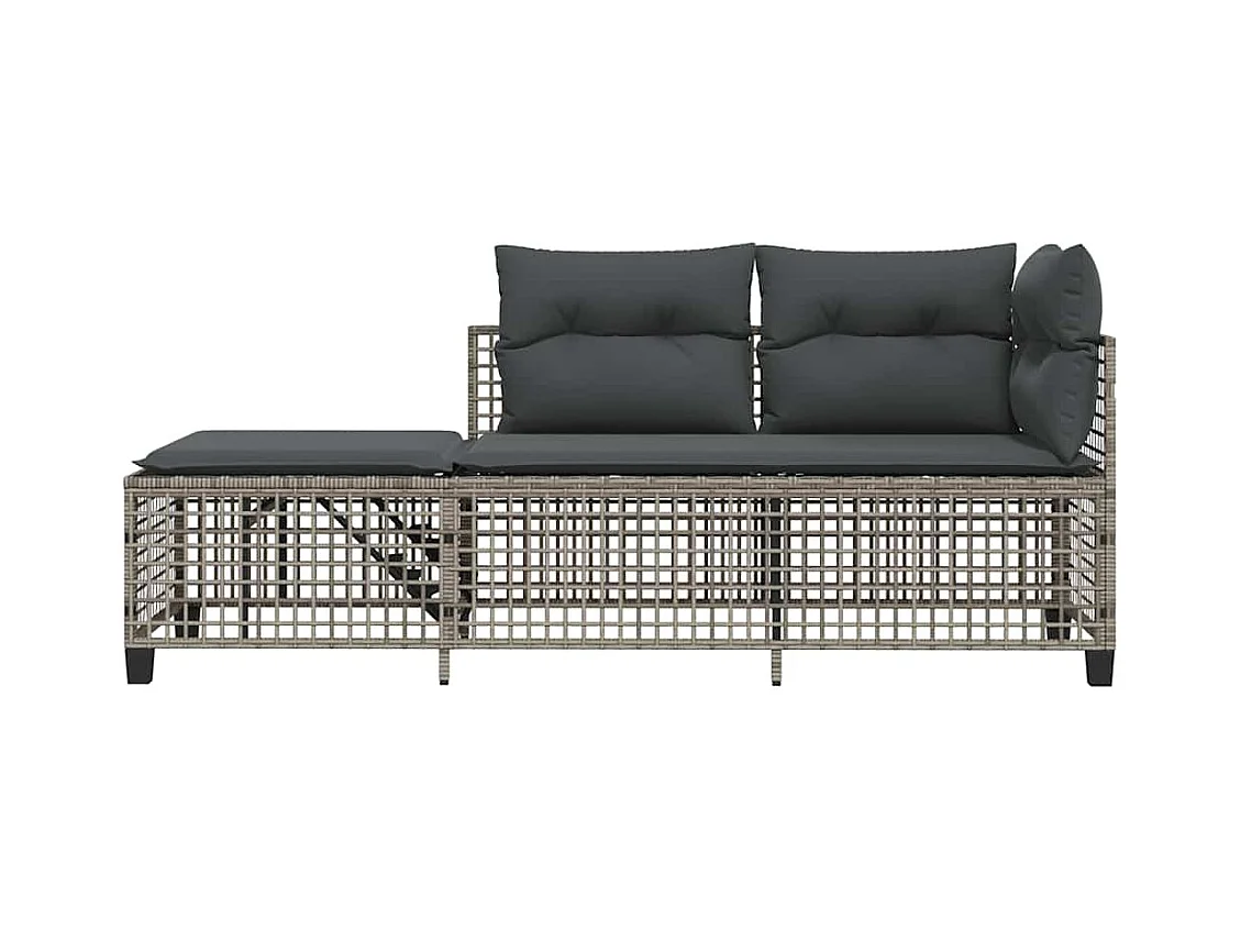 Salon de jardin d'angle avec coussins 3 pcs gris résine tressée